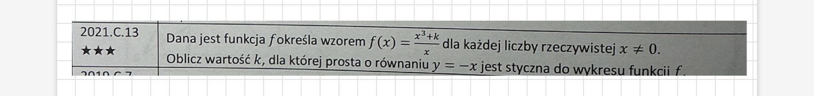 skoro y=-x ma być styczną, to jej wspólczynniki muszą spełniać odpowiednie warunki z lekcji. Ja zrobiłam układ równań