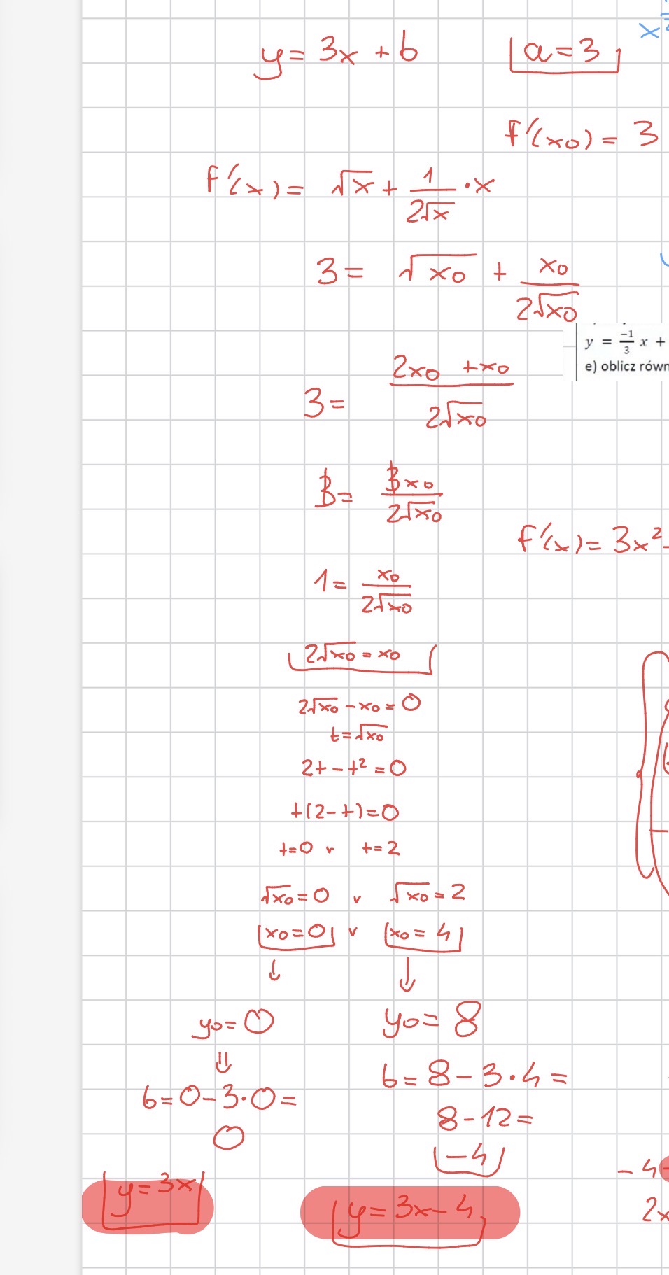 Wykorzystałam pochodną funkcji złożonej i wyszło mi że oprócz x0=4 lub x0=0 i nie wiem gdzie jest błąd