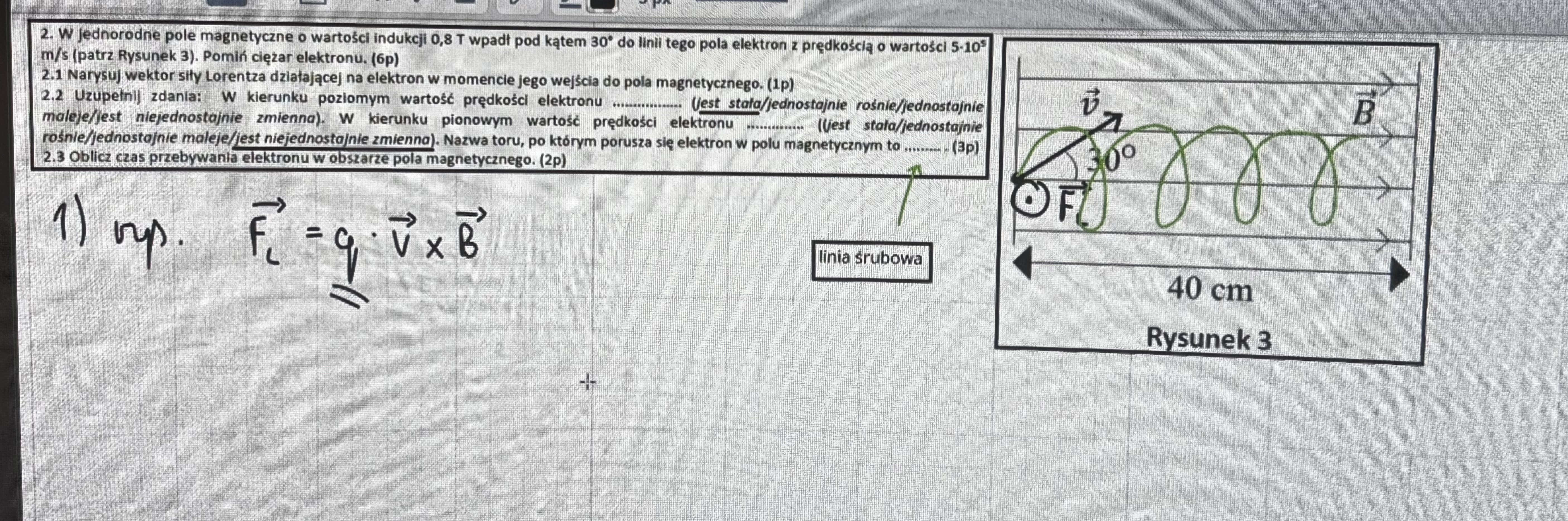 2) Czy jesli elektron wpadl do pola z jakąś prędkością stałą, to nie utrzyma jej wartości?