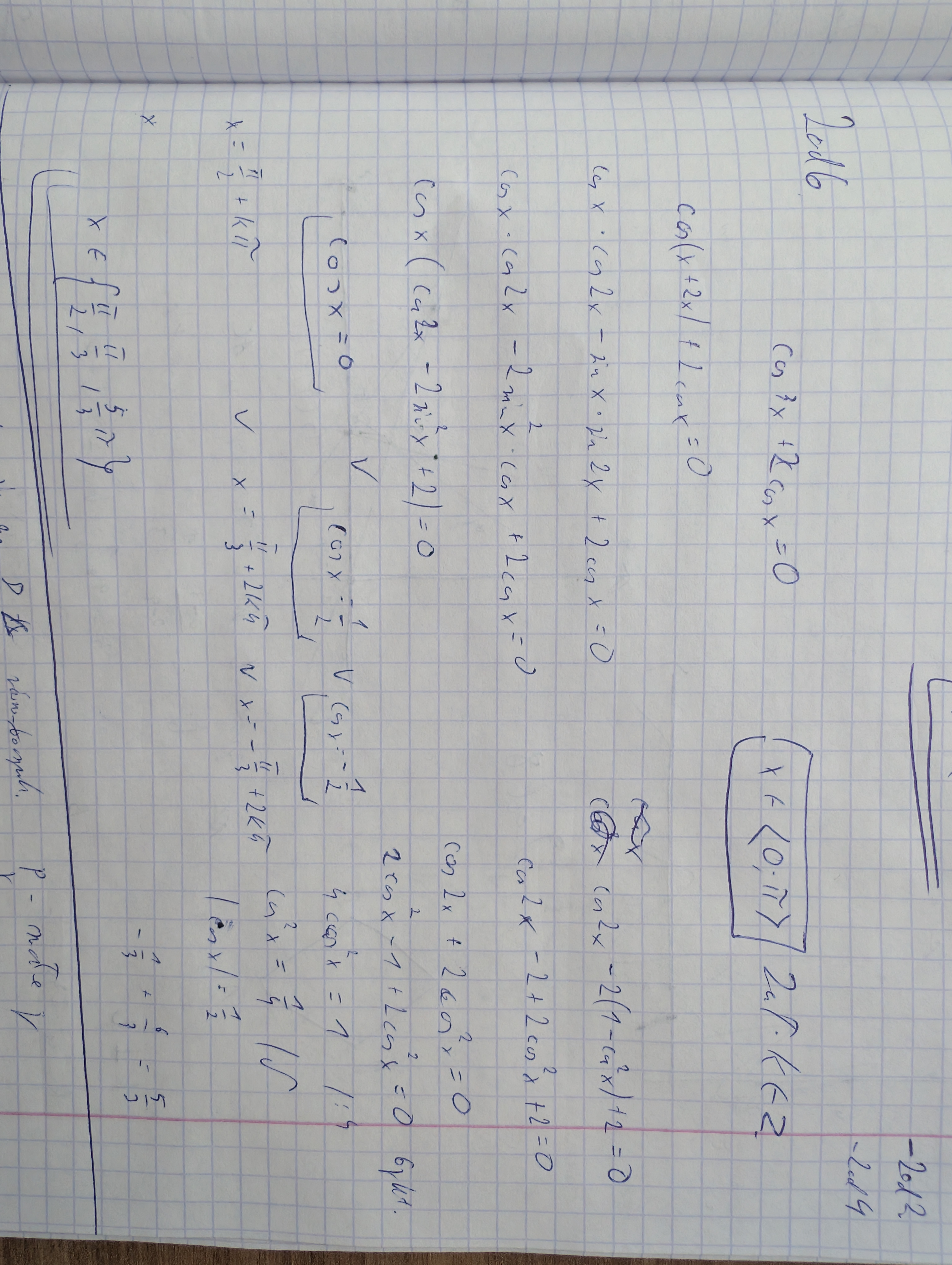 W odpowiedziach jest pi/3, pi/2 i 2pi/3 i nie wiem gdzie zrobiłem błąd