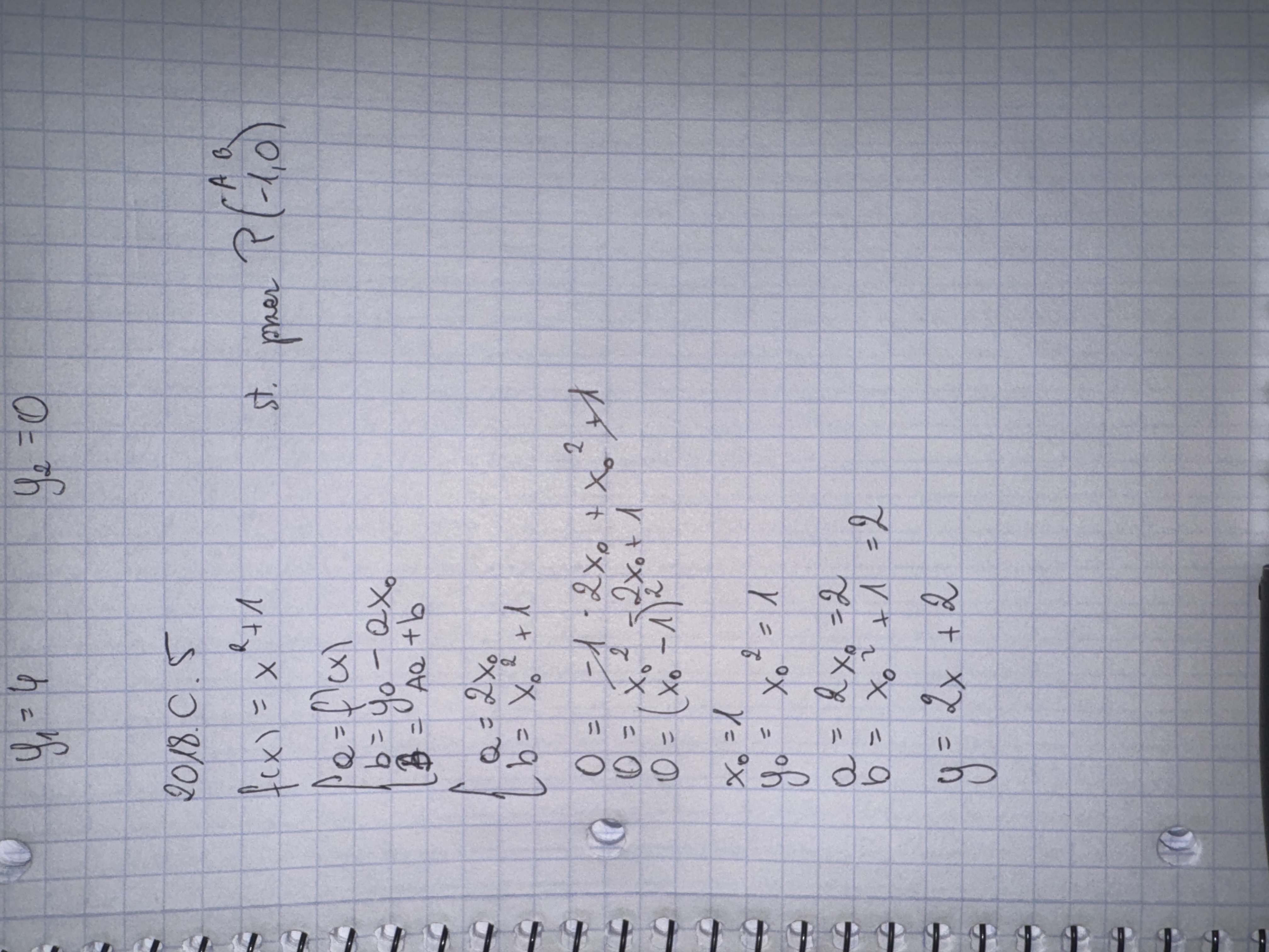 Wyznacz równanie stycznej do wykresu funkcji f(x)=x^2+1, która przechodzi przez punkt (-1,0).