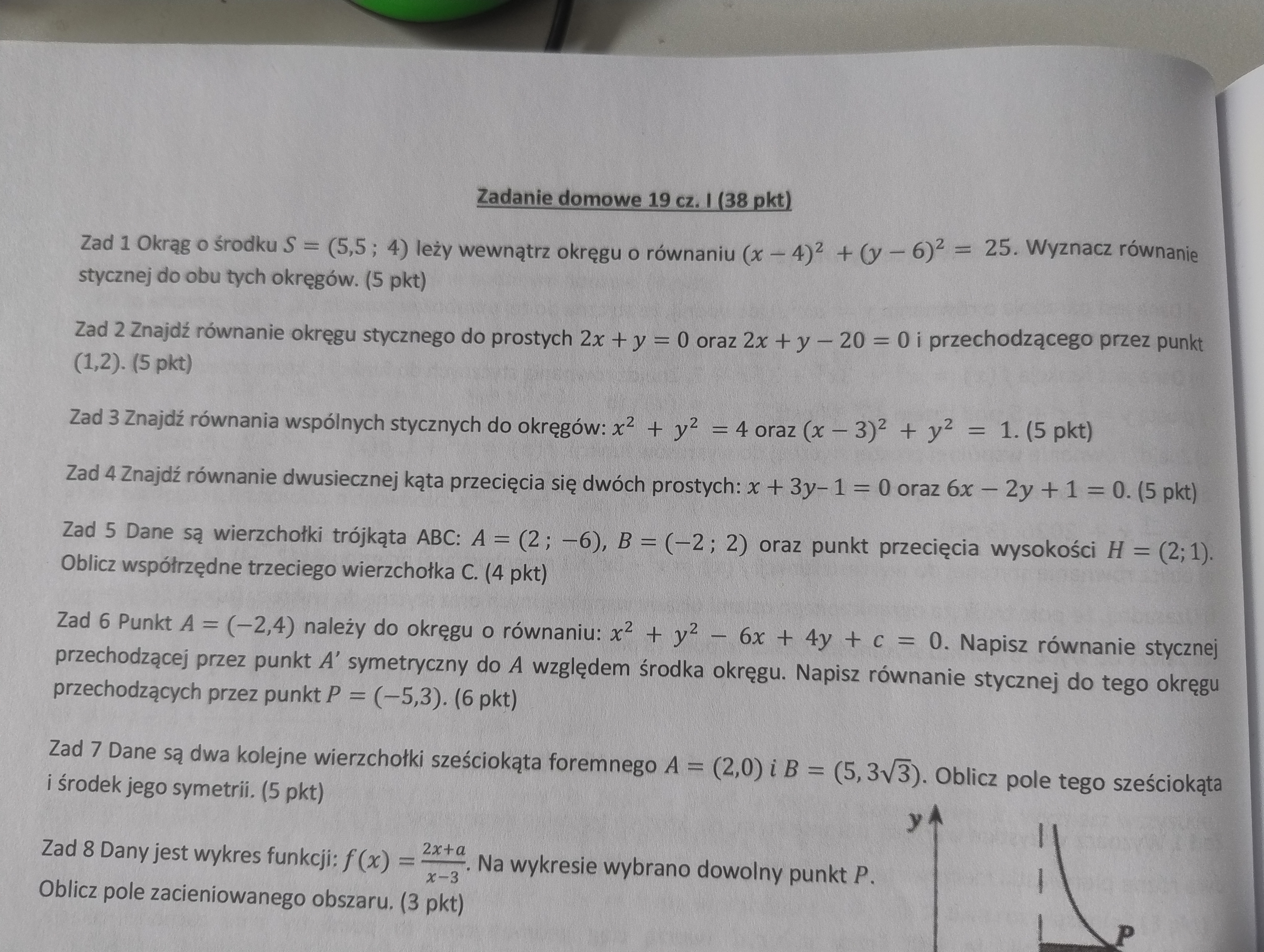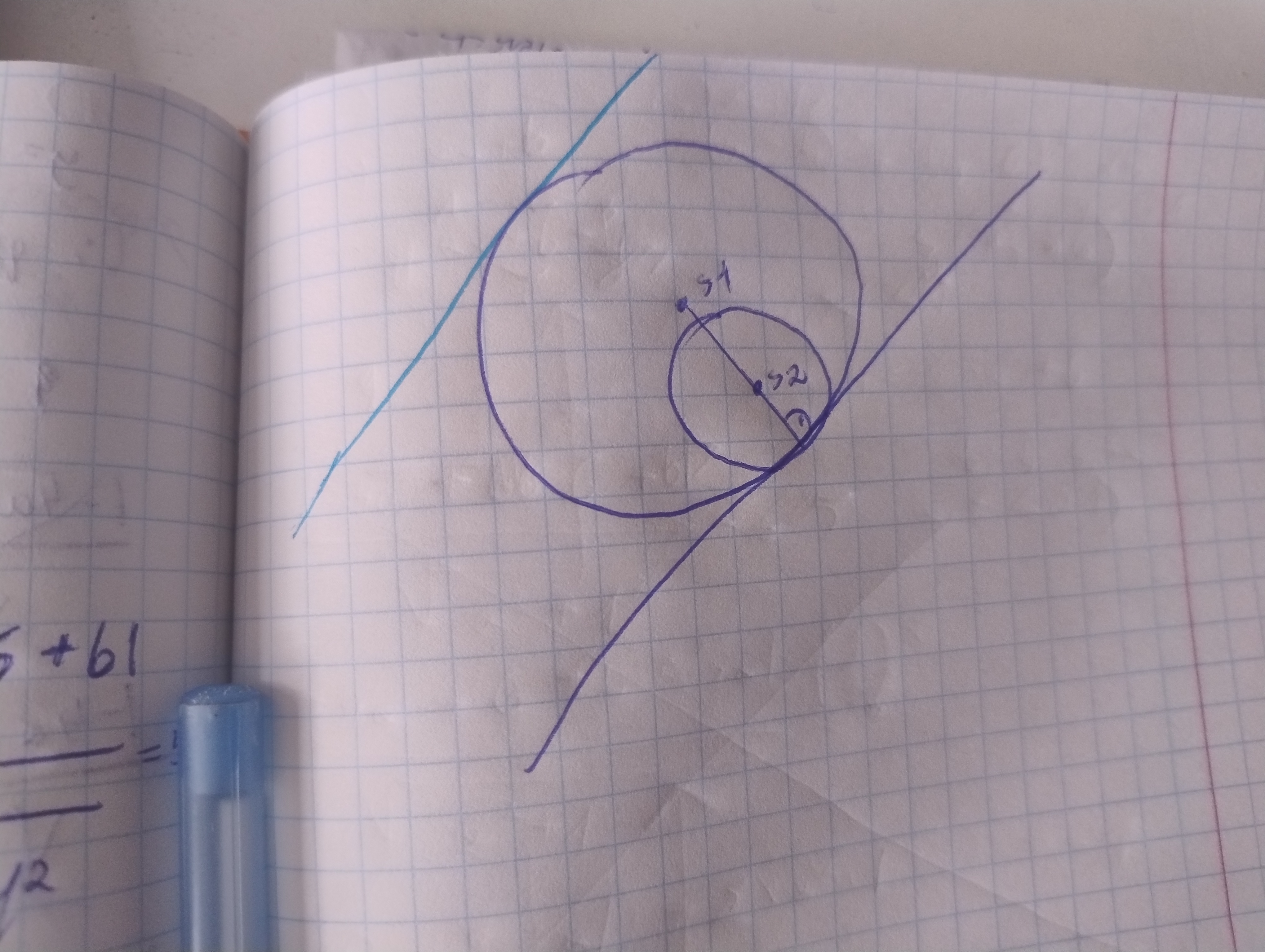 Dlaczego w tym zadaniu wybieramy tylko jedna odpowiedź? Tu będzie to -13/4. Dlaczego nie możemy założyć że te dwa okręgi mogą być styczne do siebie w tym drugim przypadku z drugiej strony czyli do jasnoniebieskiej stycznej? Po prostu wziąć dwa przypadki