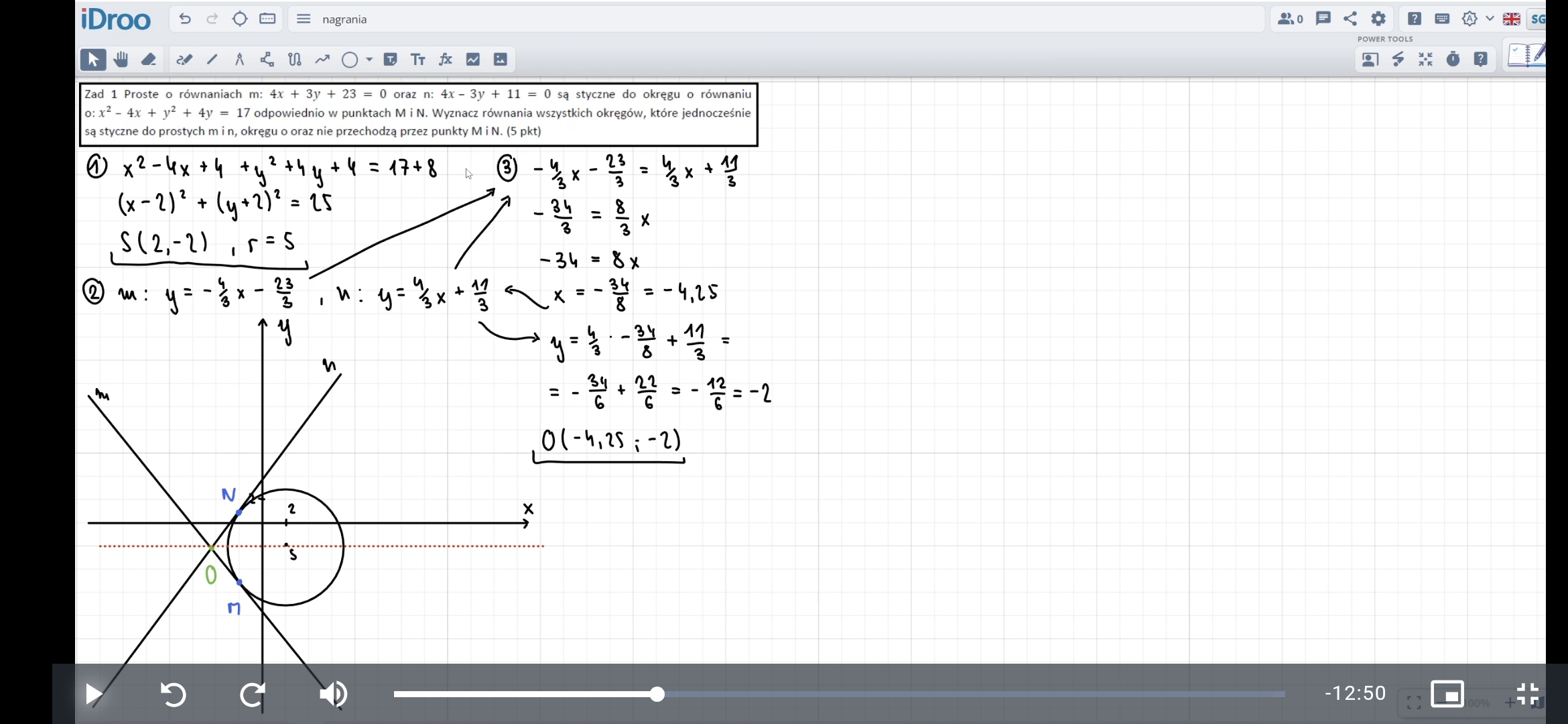 Skąd się bierze to że środki okręgów których szukamy będą znajdować się na czerwonej prostej?