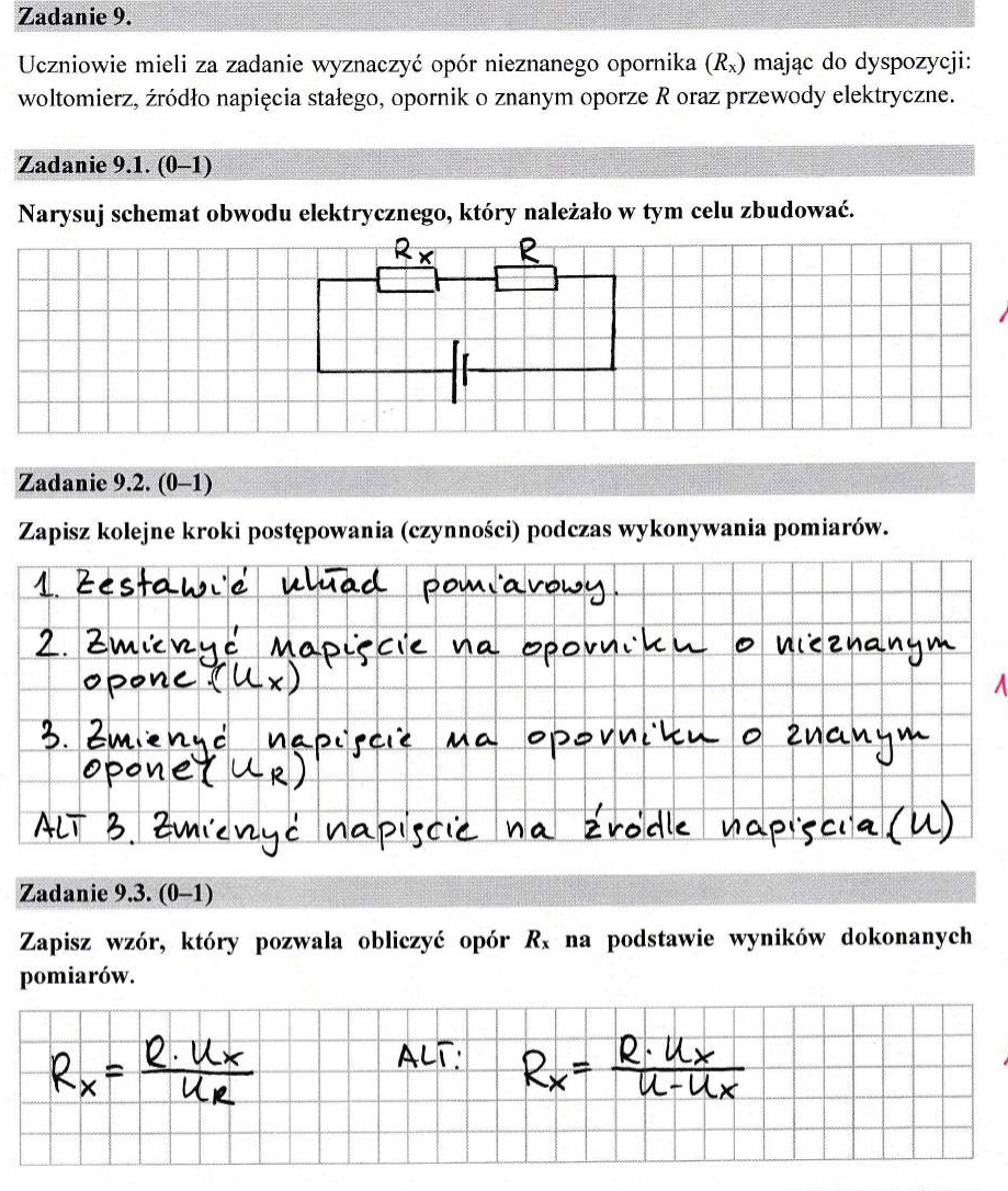 9.1 - tak, to polecenie jest trochę nieprecyzyjne. Na maturze CKE z pewnością byłoby to doprecyzowane, a jeśli nie, to Twoje podejście mogłoby i tak zostać uznane, choć wedle polecenia mamy tu do dyspozycji tylko jeden woltomierz, ale może by to przeszło ;)