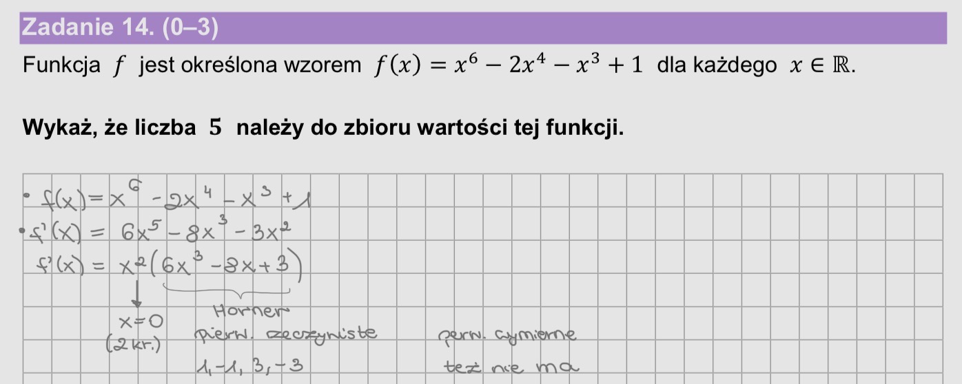 Jednak w przebiegu dalszych obliczeń wynika, że zbiorem wartości będą liczby rzeczywiste, co jest błędem.