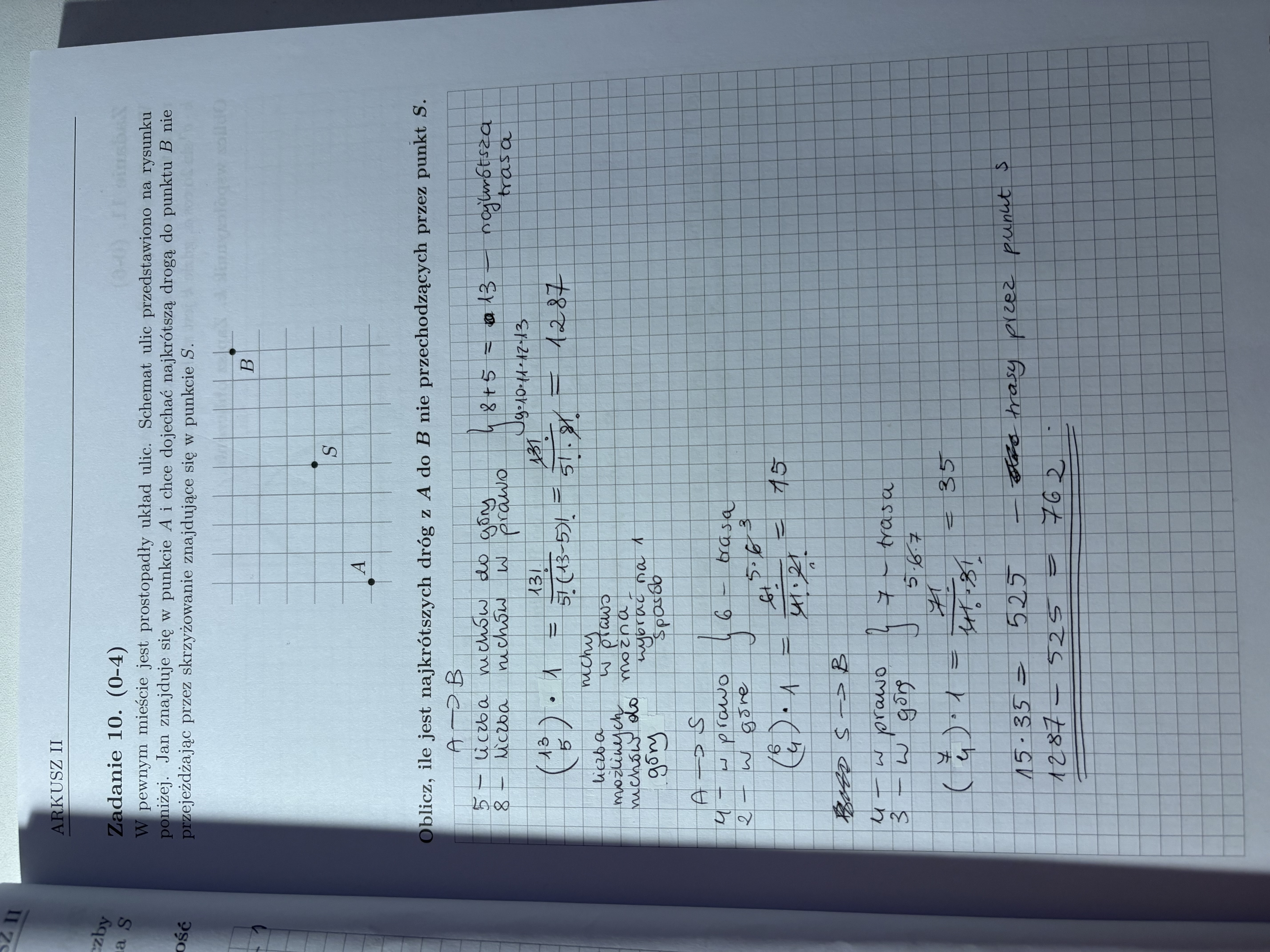 hej mam pytanko do tego zadania nie do konca rozumiem jak kombinacja uwzglednia tutaj liczbe kratek które można wybrac aby przejsc z punktu A do punktu B, skad mam wiedziec ze nalezy uzyc tutaj kombinacji?