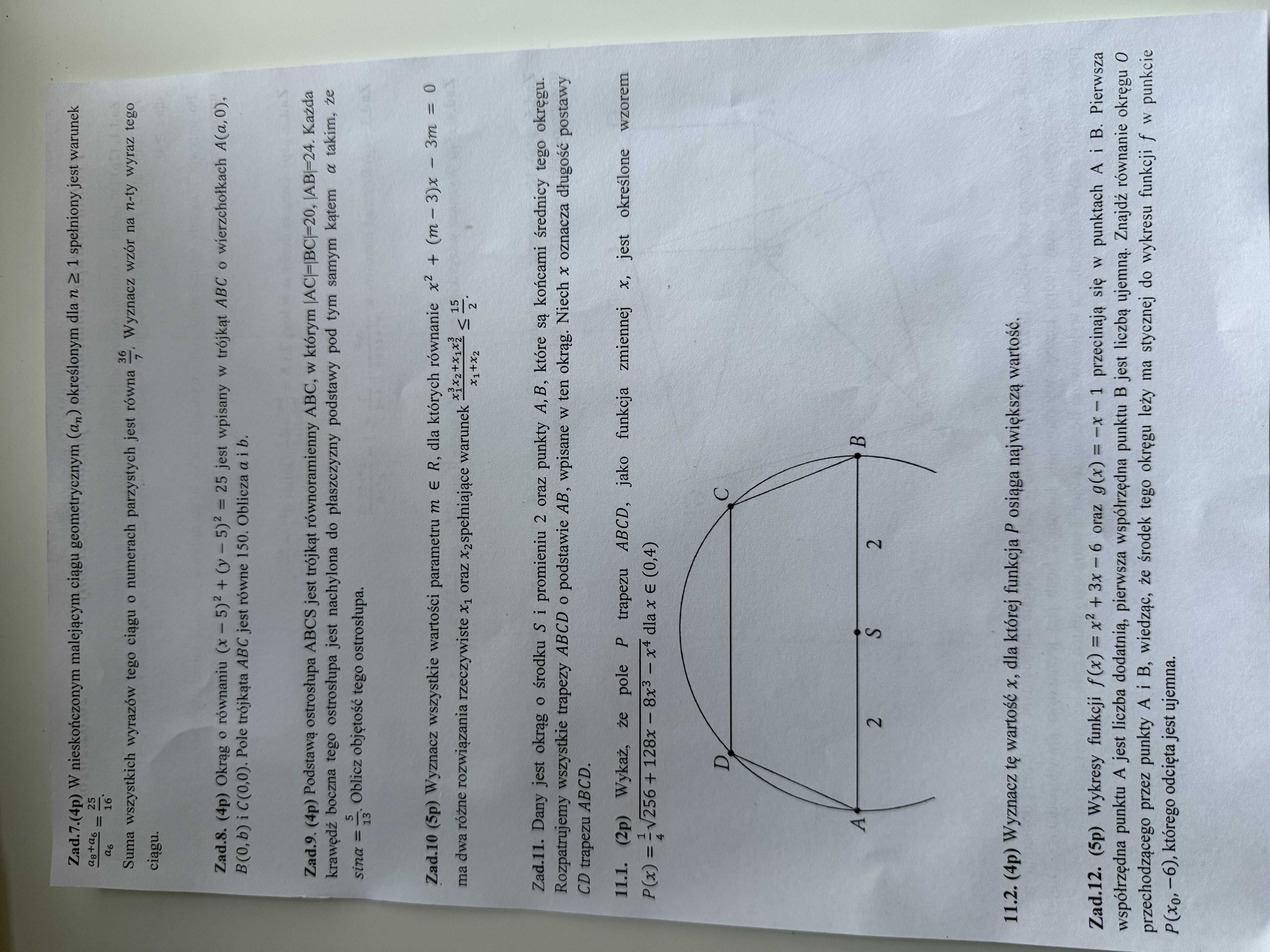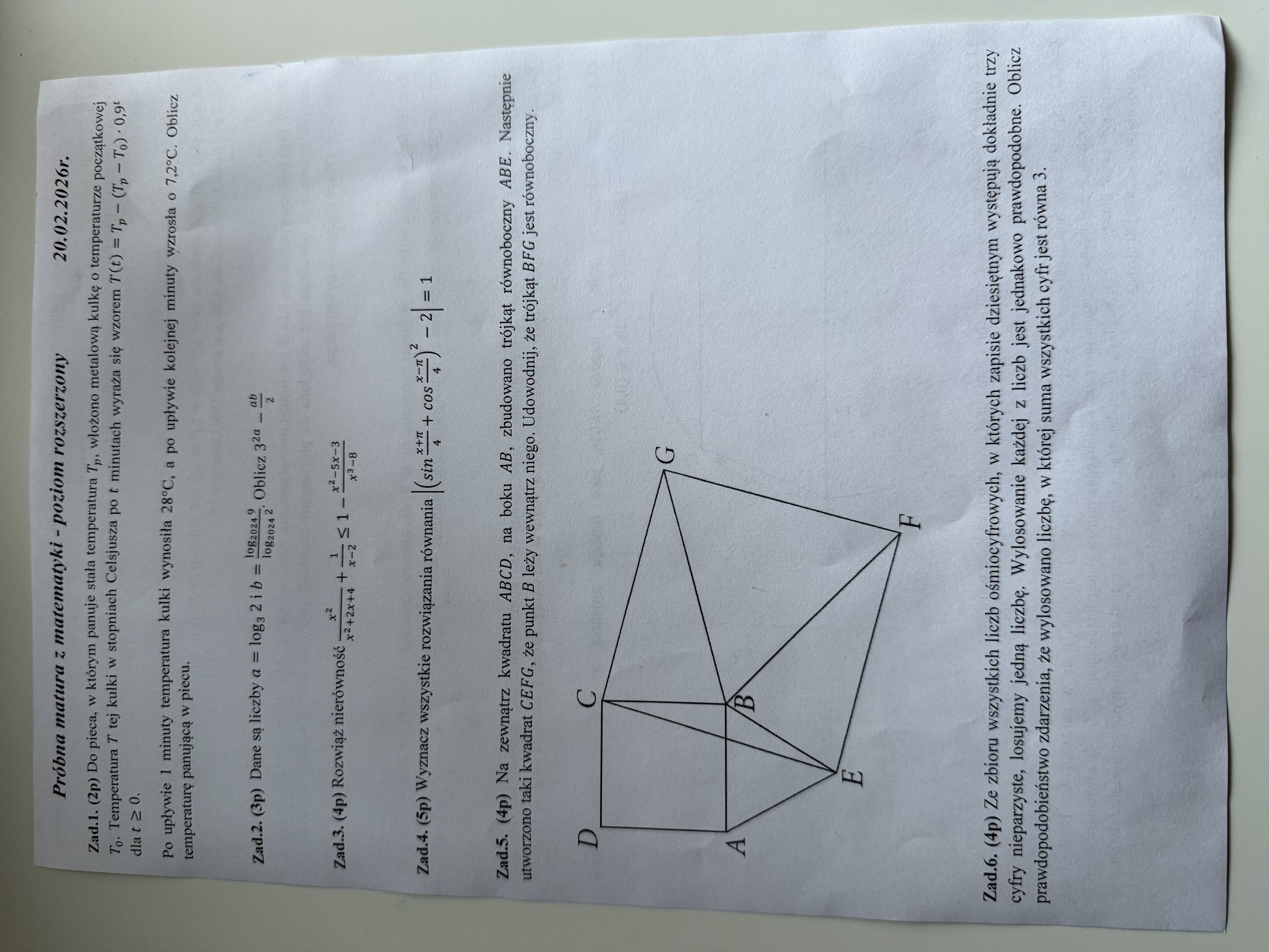 Hej, generalnie wrzucam maturkę próbną z rozszerzonej matury z matematyki wykonaną przez moja nauczycielkę ze szkoły. Wstawiam, gdyż może ktoś będzie chciał se zrobić, a także mam pytanie jak zrobić zadanie 5. Totalnie nie wiedziałem od czego zacząć i co zrobić. Pozdrawiam