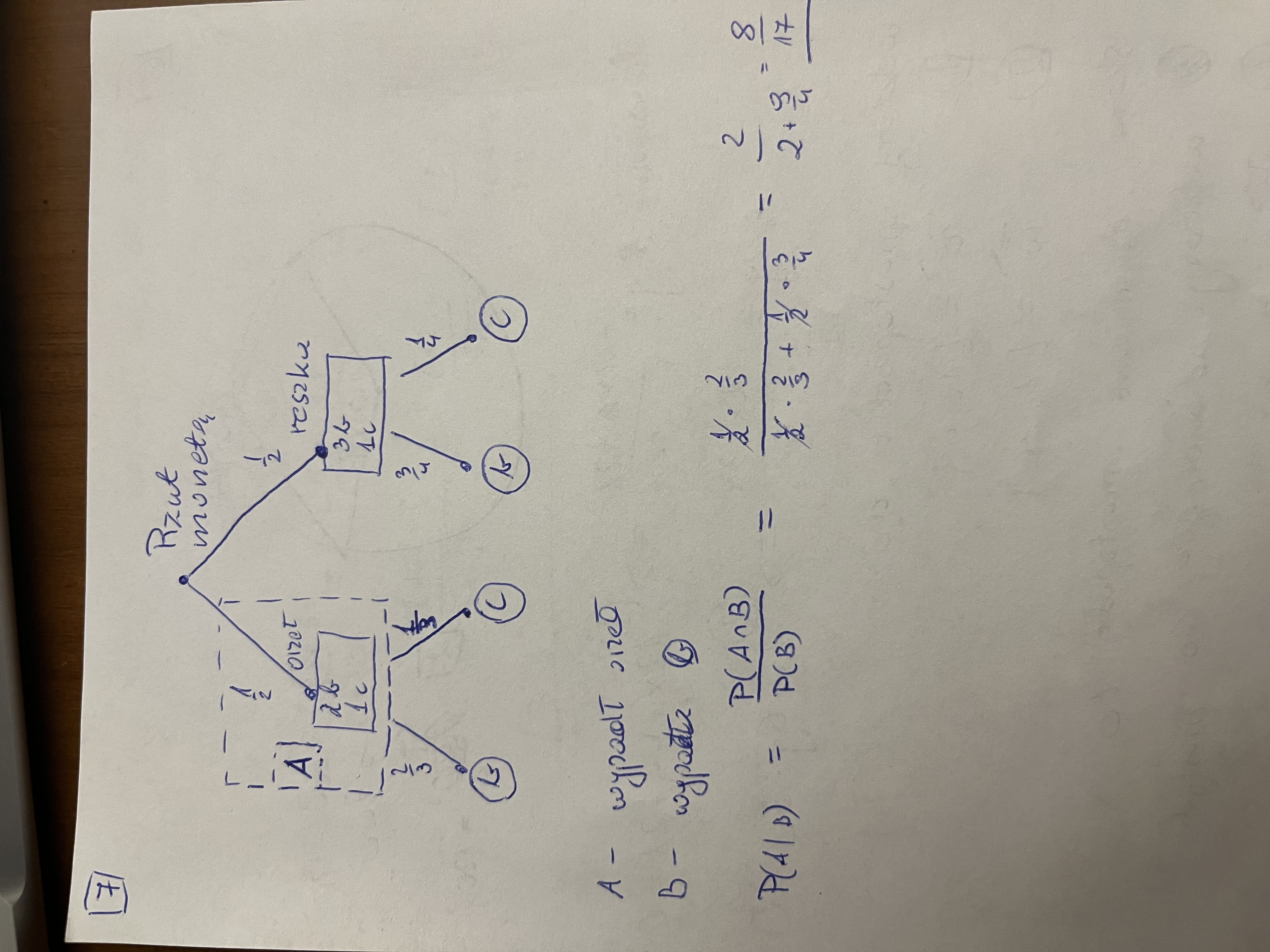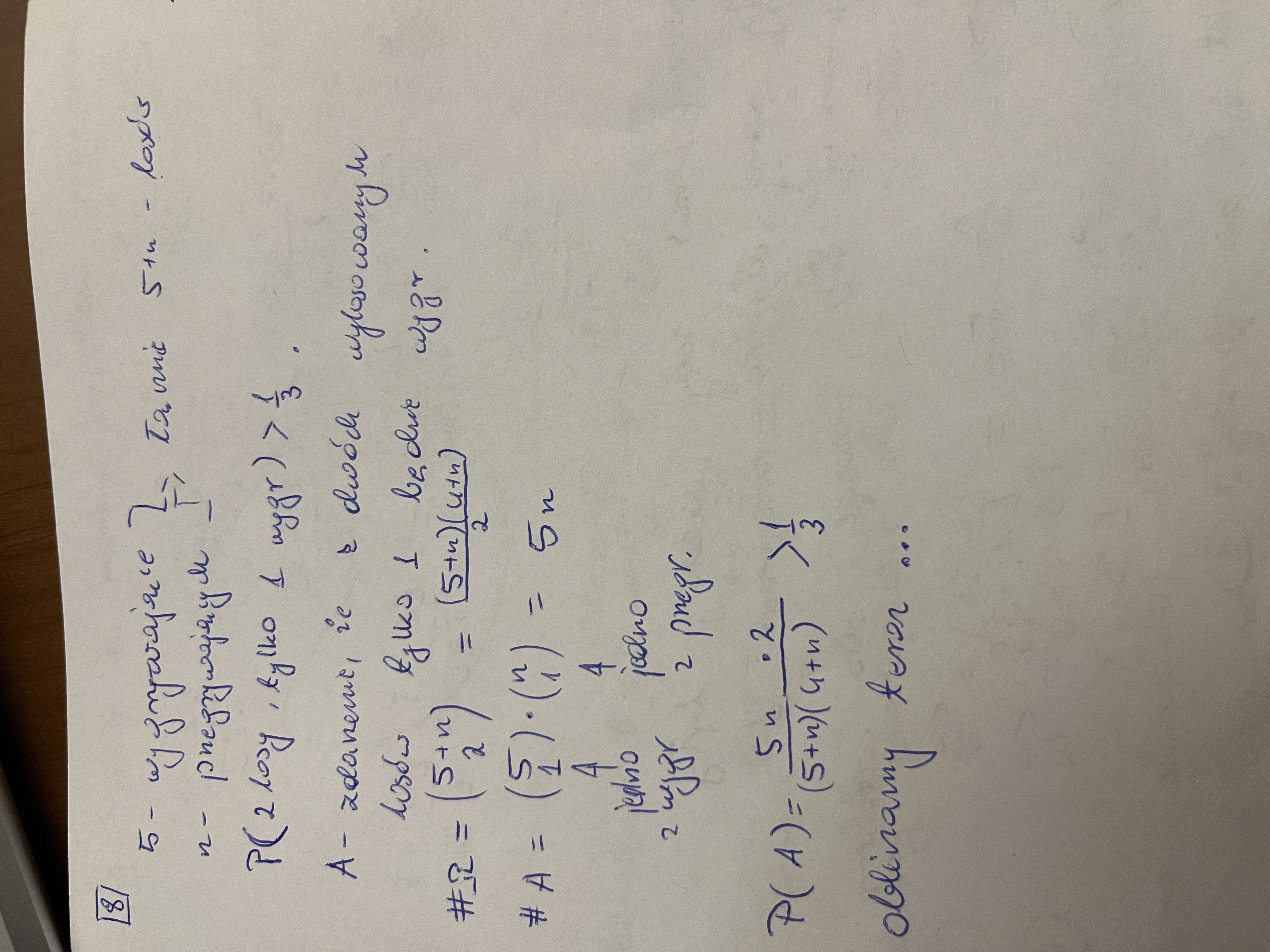 W kolejnym zadaniu próbujemy policzyć prawdopodobieństwo z niewiadomą, po to by pod sam koniec podstawić do nierówności i ją policzyć z równania wymiernego