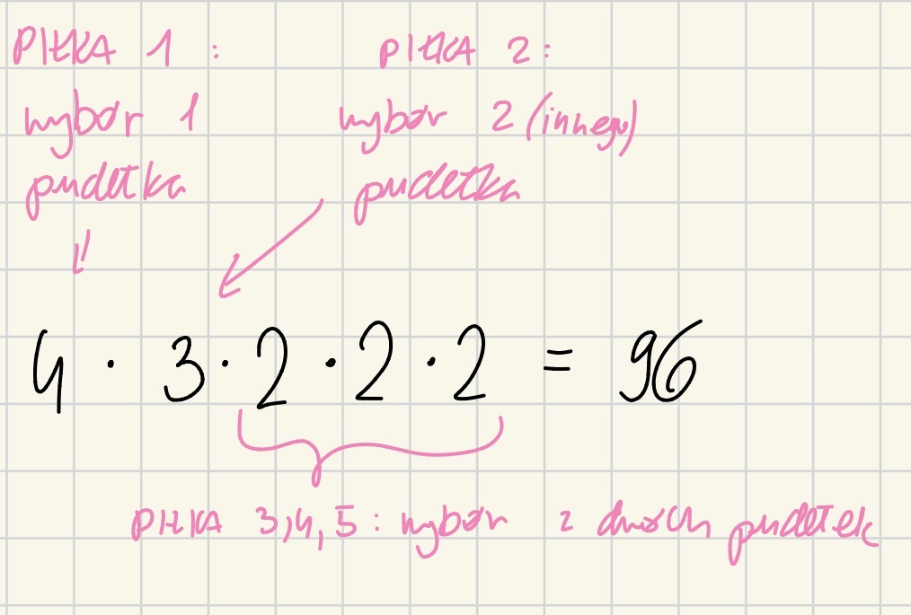 dlaczego nie mozna zrobic tego w ten sposob? wiem ze z kombinacji to wychodzi (wybieramy 2 z 4 pudelek) ale dlaczego nie mozna tego zrobic w ten sposob?