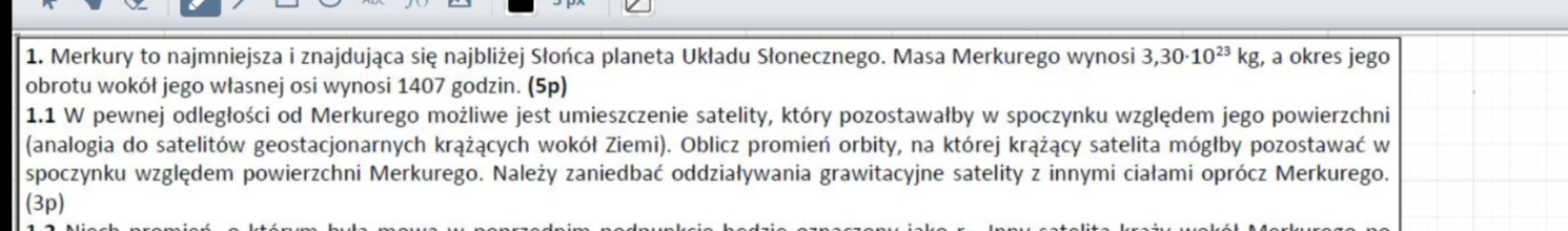 Nie, ponieważ r, które tu policzymy to będzie odległość satelity od środka Merkurego, czyli faktycznie będzie to poszukiwany promień orbity, bo środek tej orbity (okręgu) będzie znajdował się w środku Merkurego (zawsze r w tych wzorach to już jest odległość liczona do środka danego ciała).