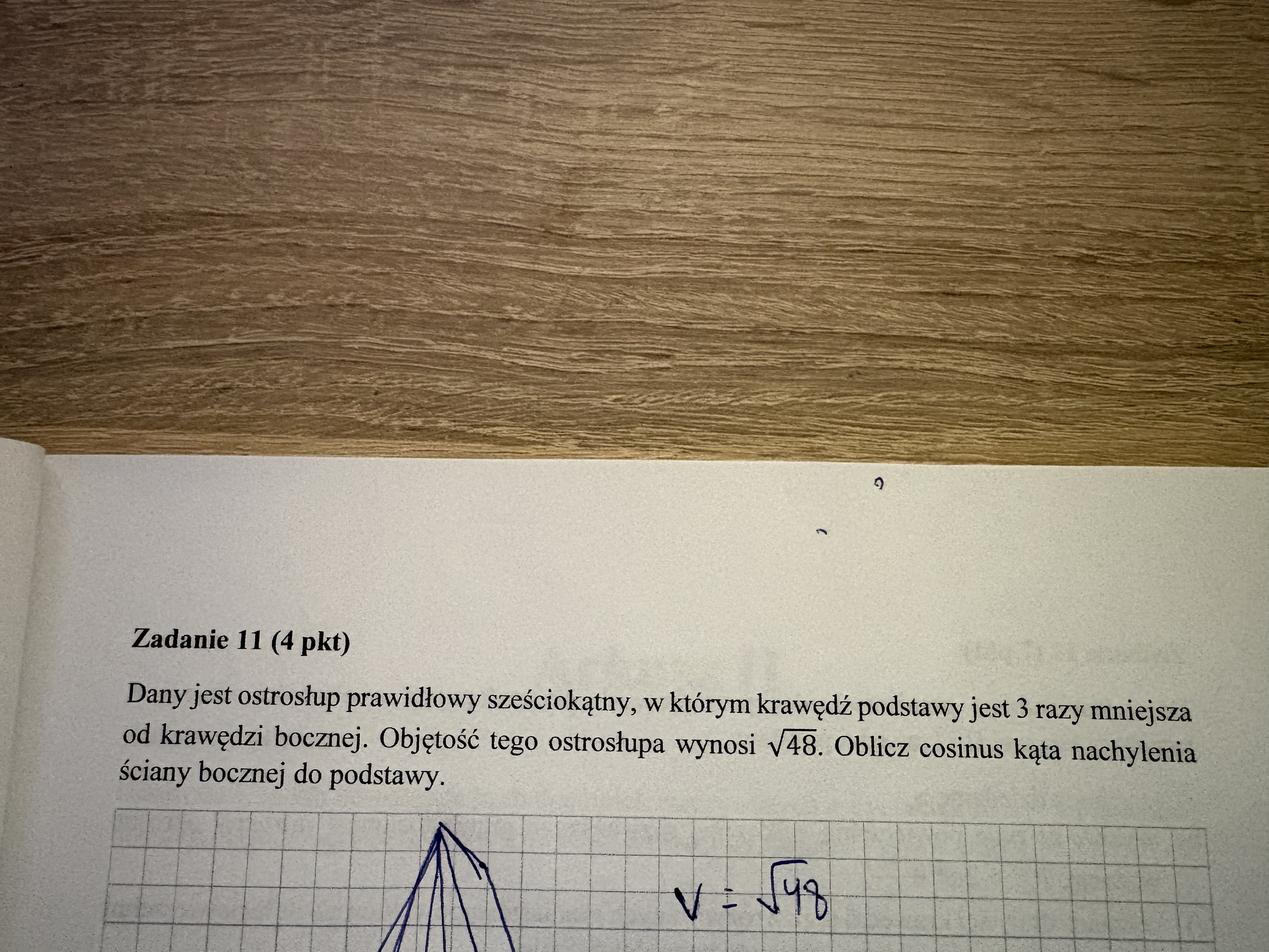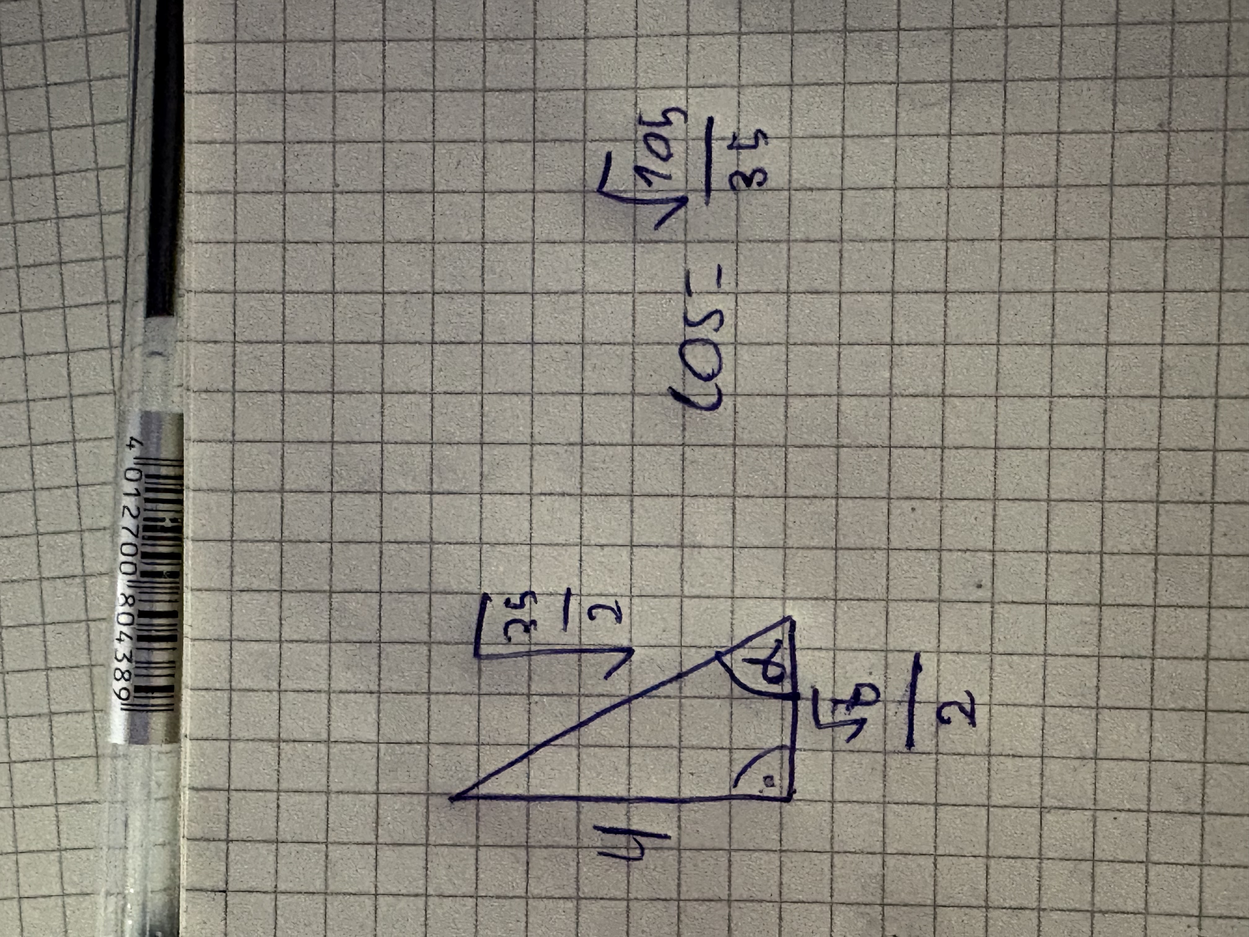jak masz już wszystkie boki i trójkąt jest prostokątny to po prostu policz sobie normalnie tego cosinusa: