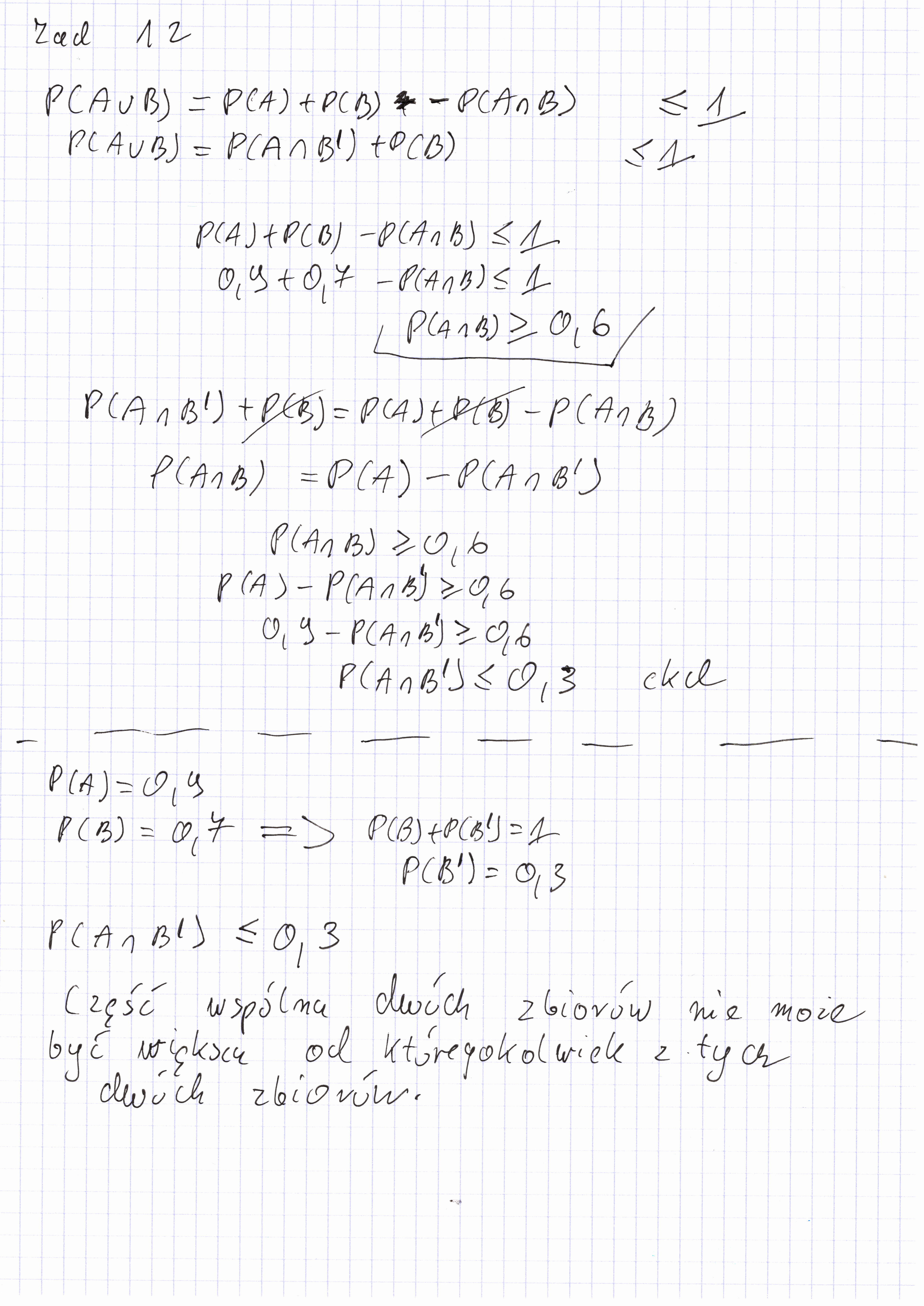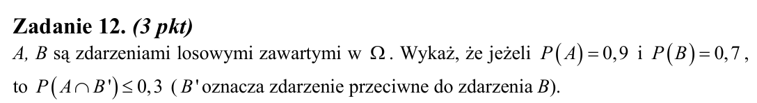 W kryteriach CKE są dwa rozwiązania algebraiczne, podobne do tego co ja zrobiłem na górze kartki. Ale tego zadania nie da się udowodnić tak banalnie jak pod przerywaną kreską? Część wspólna nie może być większa od branego do niej zbioru a B' akurat można jednym prostym działanem obliczyć