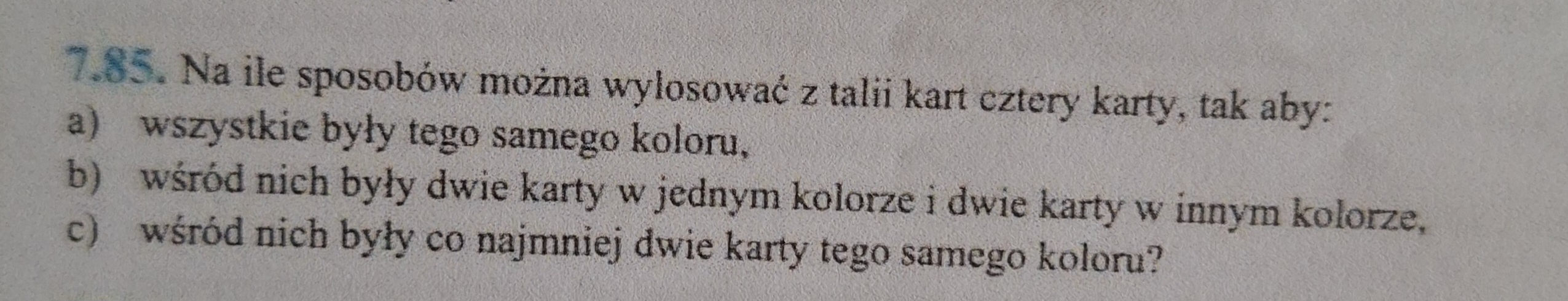 Dlaczego w tym zadaniu kolorem oznaczone są trefl, karo, kier i pik, a nie jest liczone jako kolor (czerwony i czarny)?