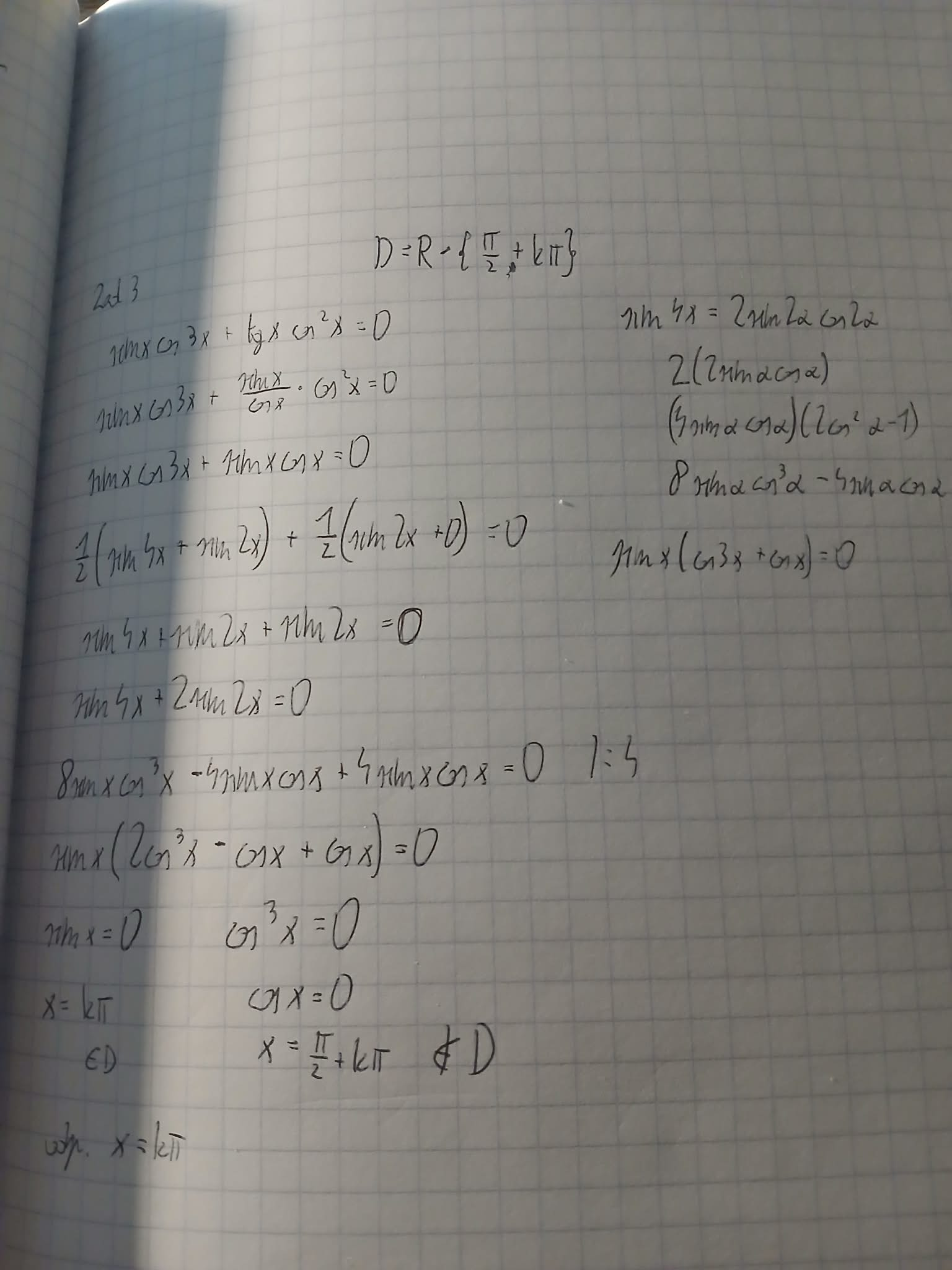 W czwartej linijce tam gdzie masz pierwszy nawias powinno być + sin(-2x).