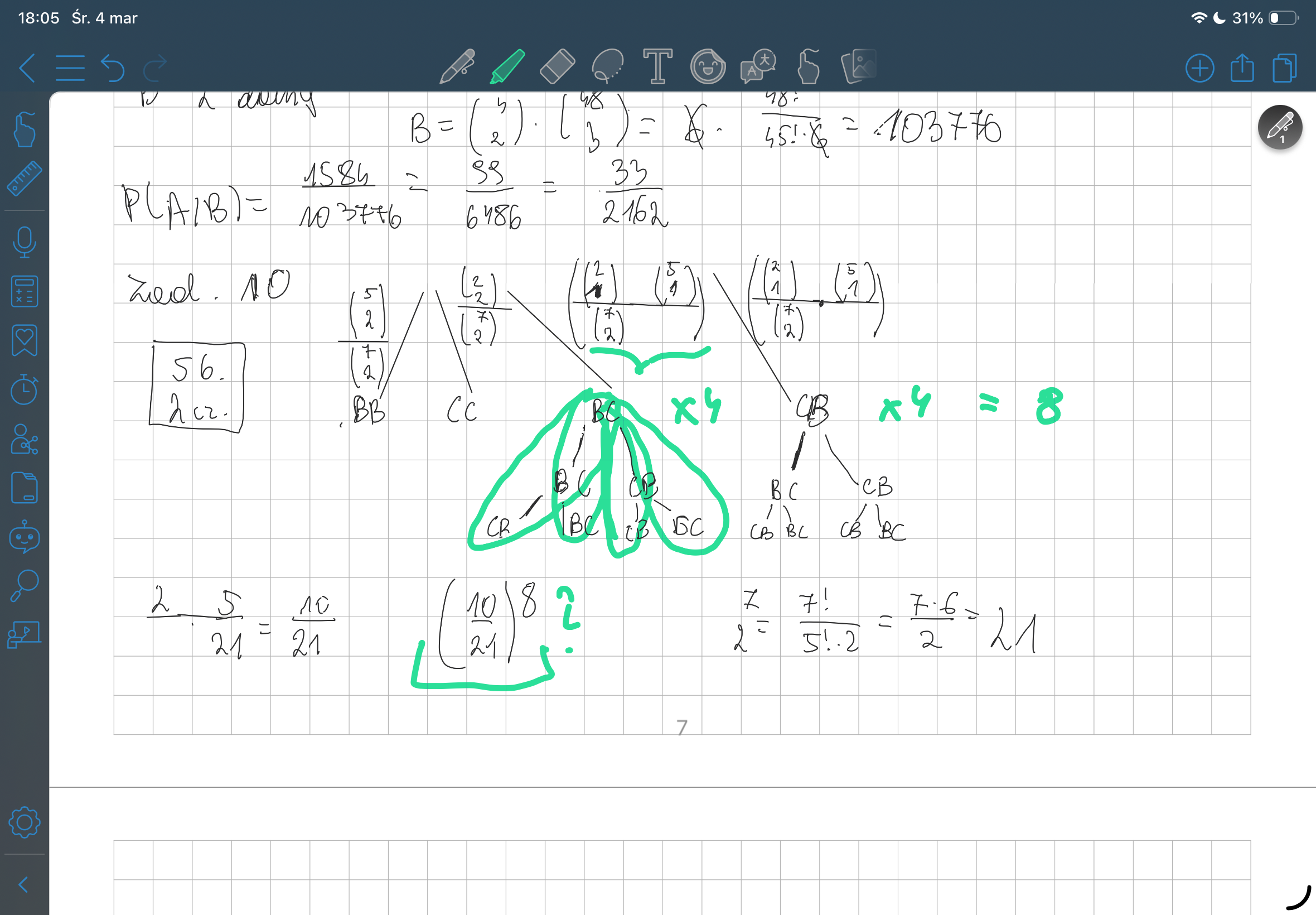 W urnie znajduje się pięć kul białych i dwie czarne z urny losujemy pięć razy po dwie kulę które za każdym razem wkładamy ponownie do urny oblicz prawdopodobienstwo że trzy razy otrzymamy parę kul różnego koloru