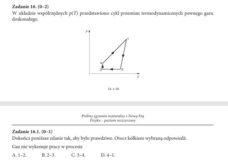 Delta V jest w przemianie (3-4) ujemna co oznacza że nad gazem została wykonana praca a nie gaz wykonał prace dlatego zaznaczyłem odpowiedź C.