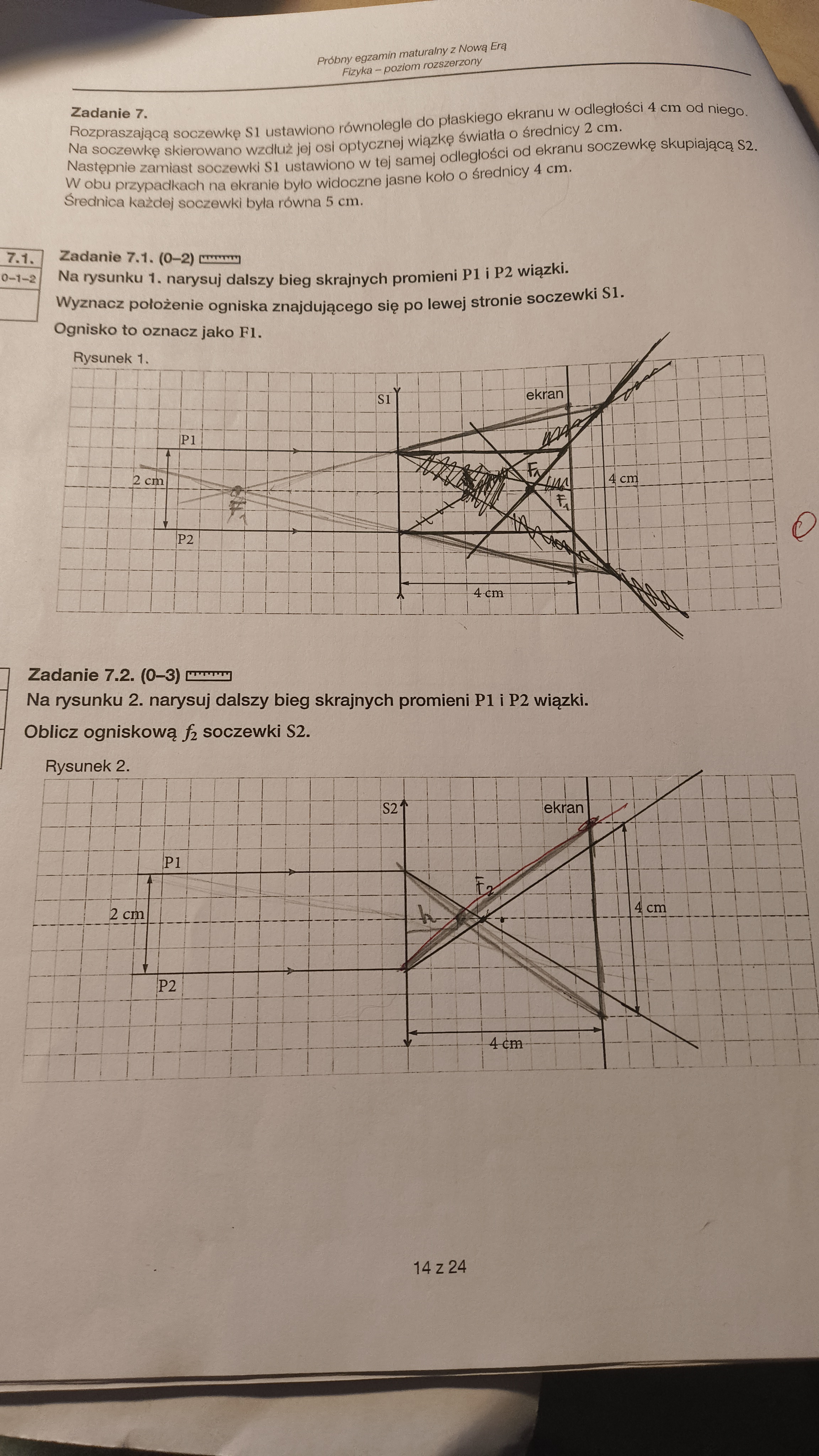 Na rysunku jest tylko lewa strona, że promienie idą równolegle do podłogi, a oprócz tego jest zaznaczony obraz na ekranie ma on 8 kratek tak jak jest zaznaczone 4 cm.