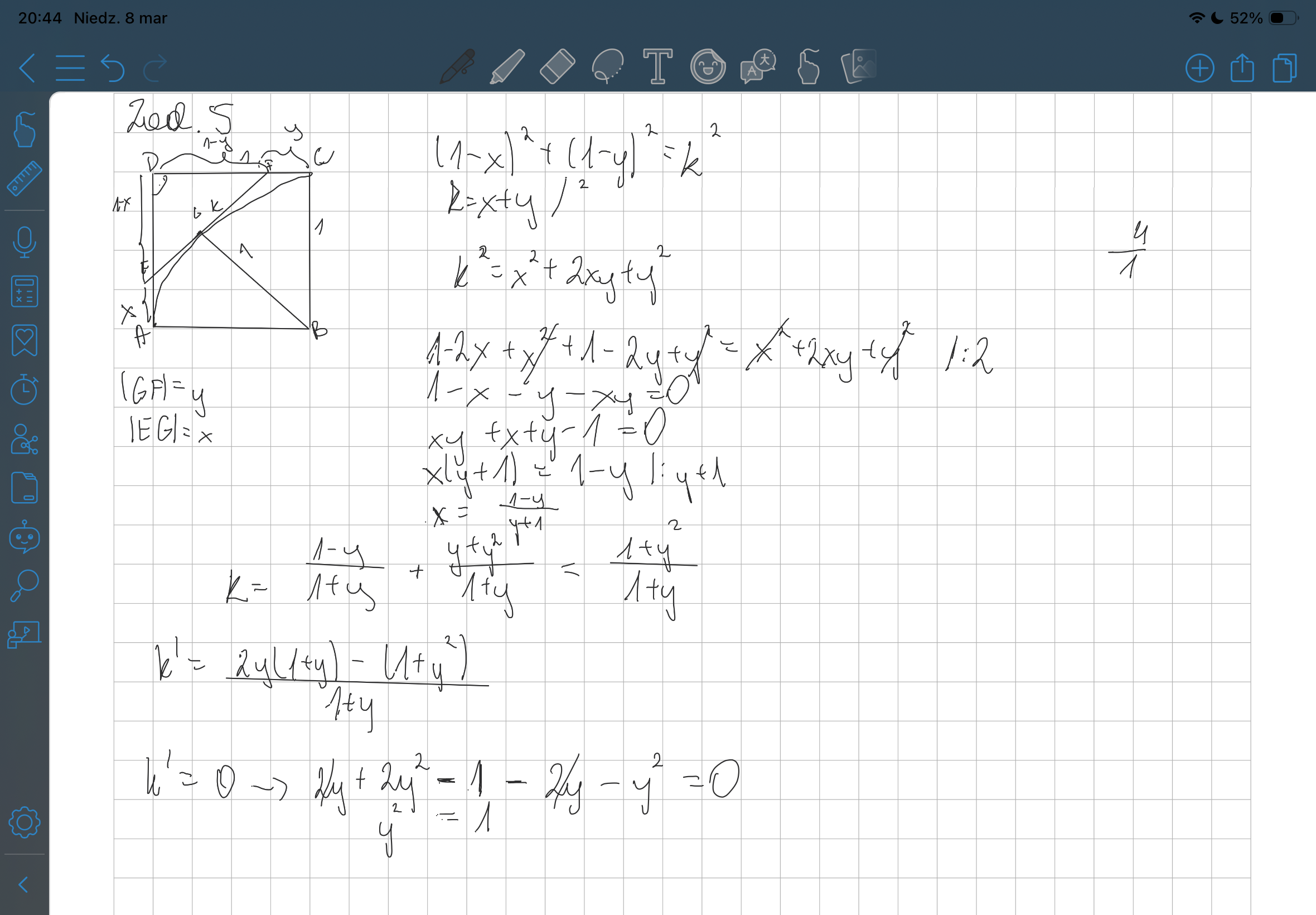 Co tu jest źle? Bo jak obliczam to wychodzi że y to 1, a tak nie może być.