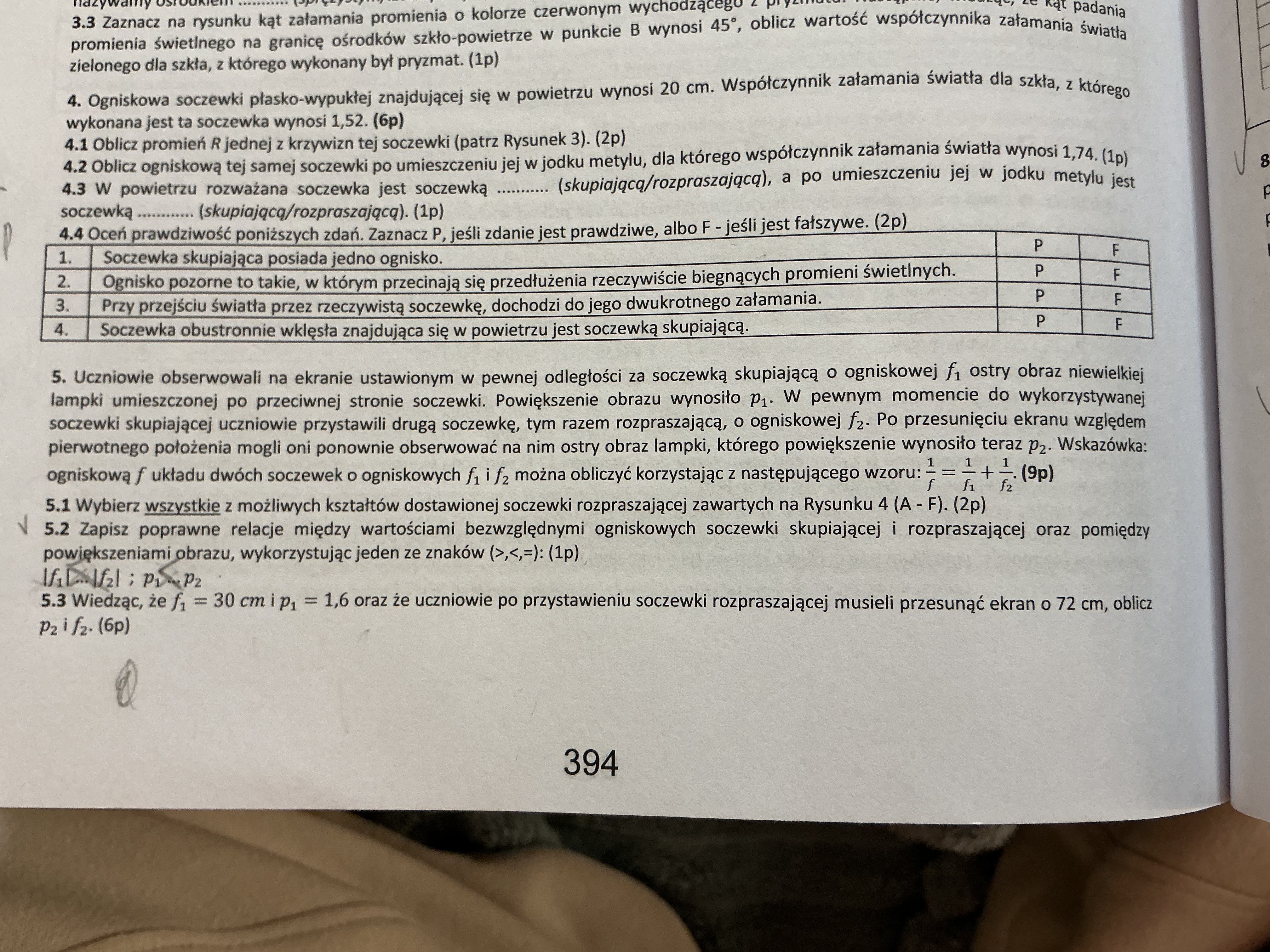 Dlaczego w tym podpunkcie przy obliczaniu f nie możemy użyć 1/f=1/y + 1/x.  skoro mamy i y i x, tylko robimy to z stosując powiększenie?