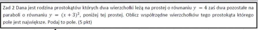 • Sama wcześniej chciałam dać w dziedzinie x należy od -5 do -1, tak aby na pewno zawierał się w maksymalnym przedziale paraboli do prostej y=4. Dlaczego moje założenie jest błędne?