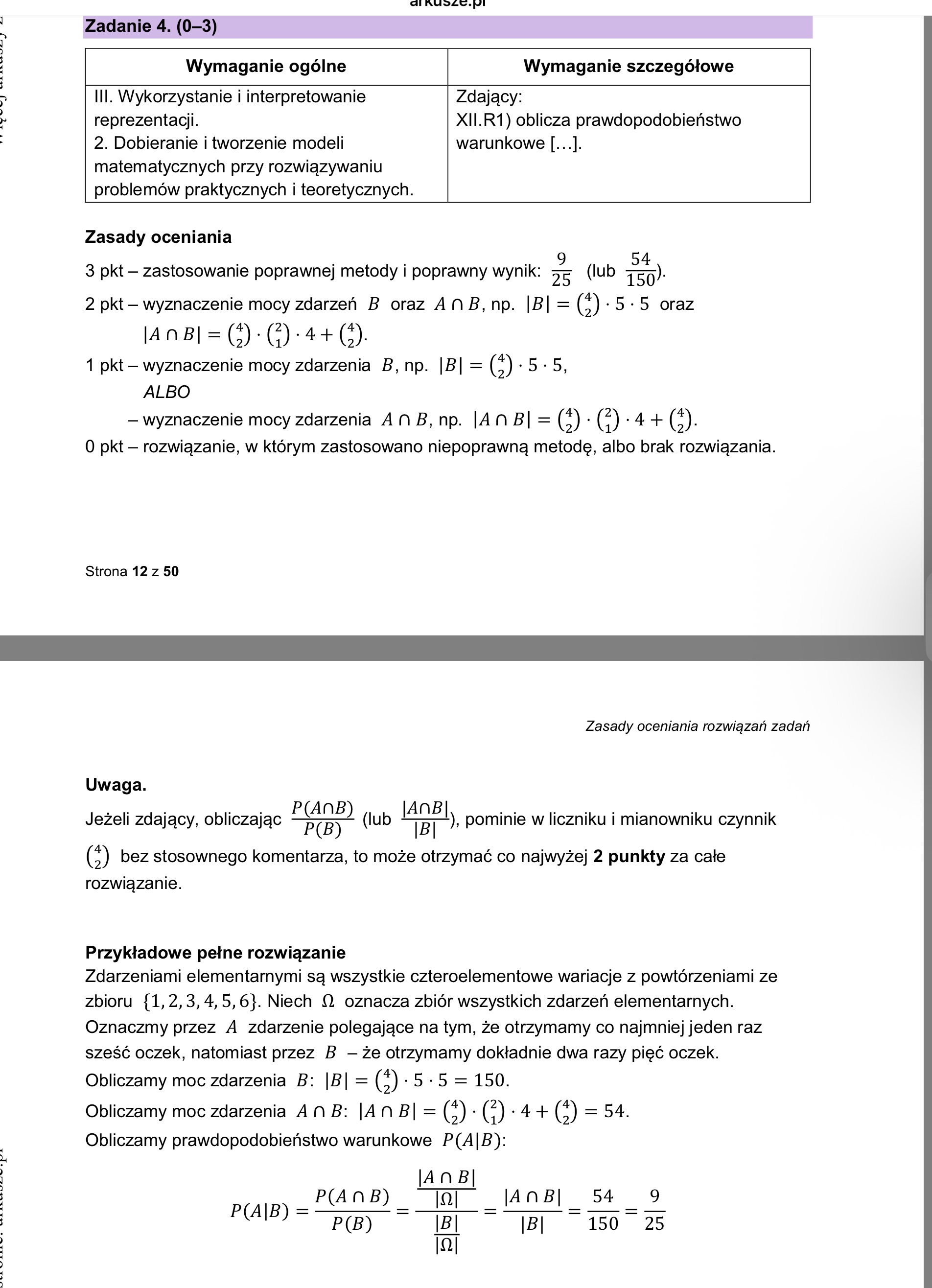 Użyłam w tym zadaniu wariacji z powtórzeniami a w odpowiedziach są kombinacje ale wynik wychodzi ten sam , nie wiem czy moje rozumowanie jest błędne czy CKE nie uwzględniło po prostu takiego przypadku
