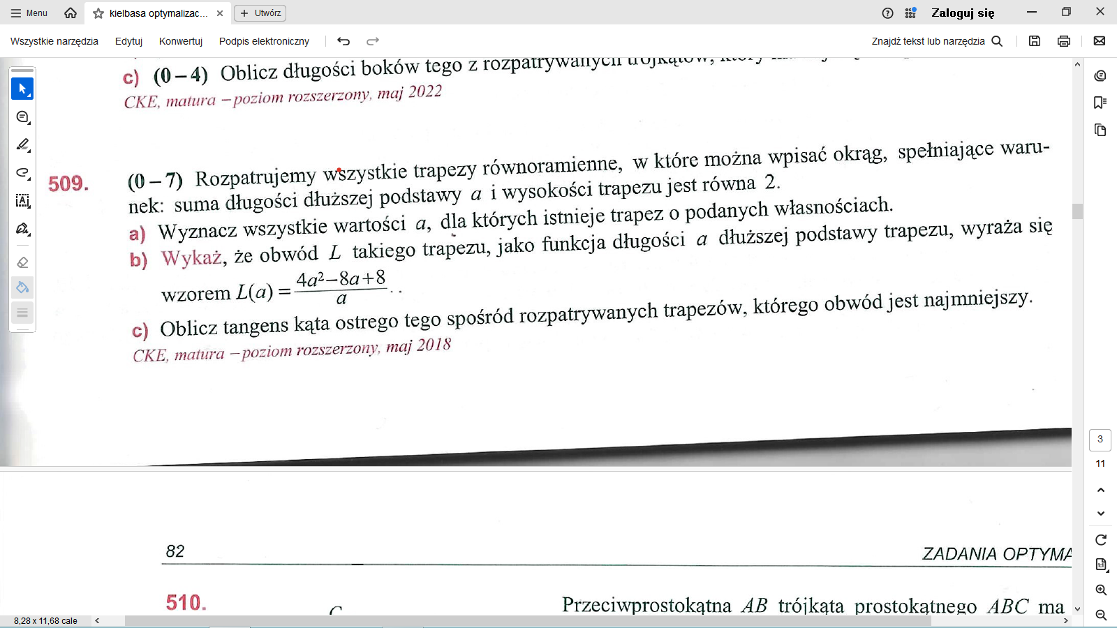 Zbiór zadań kiełbasa - zadanie 509 optymalizacja