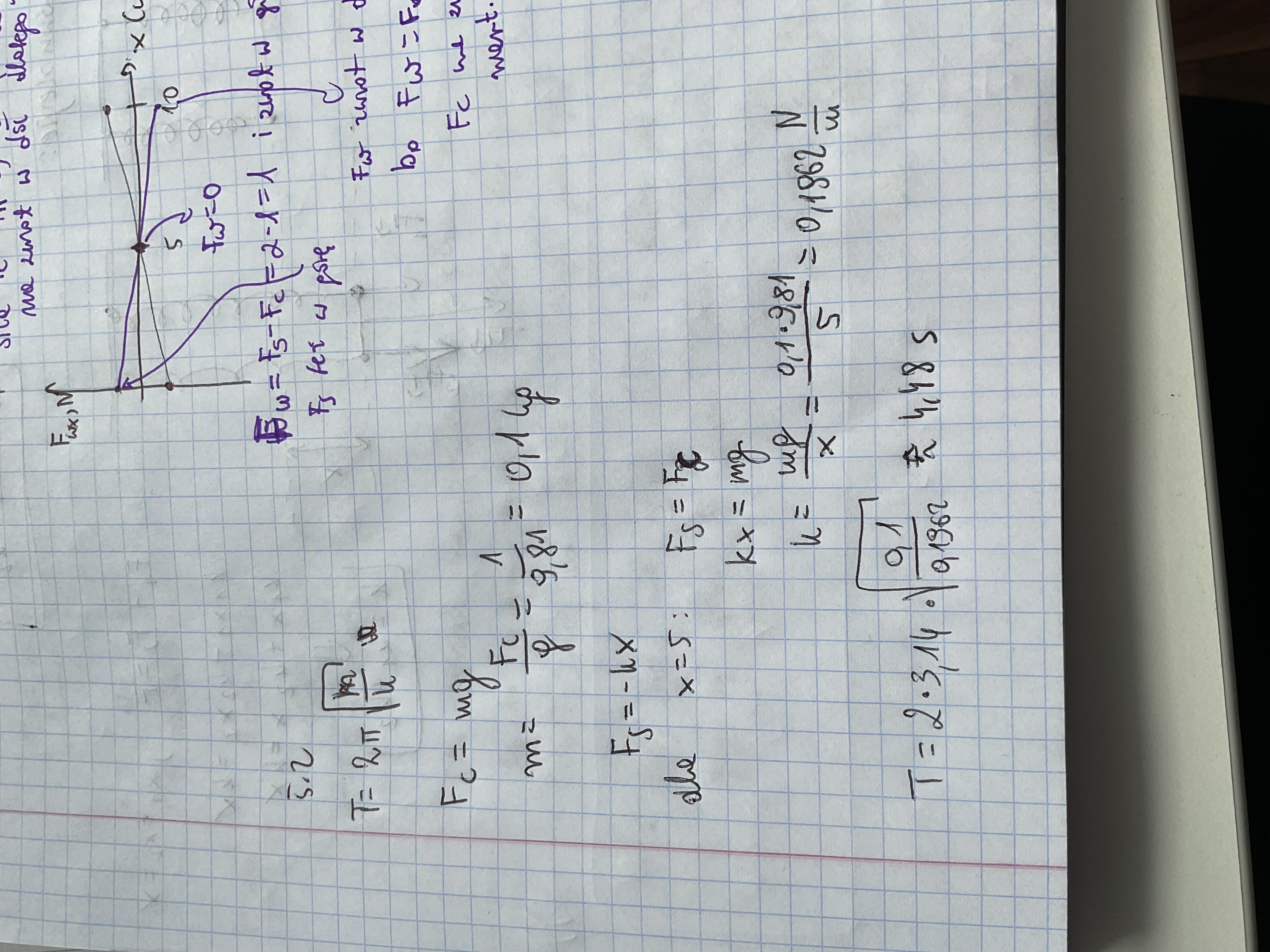 Masz prawie dobrze - metoda jest bardzo dobra, tylko wkradł Ci się banalny błąd obliczeniowy - mianowicie licząc k w mianowniku masz x, który wynosi 5 cm, a nie 5 m, więc w mianowniku skoro używasz jednostek podstawowych musi pojawić się 0,05, a nie 5. I wtedy dostaniesz dobry wynik :)