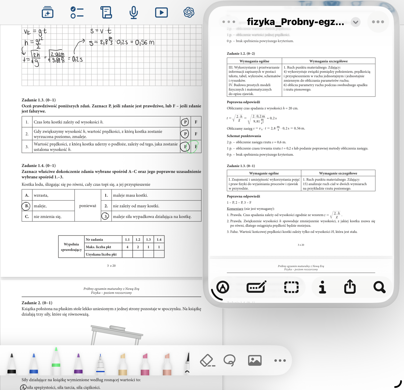 nie rozumiem dlaczego w podpunkcie trzecim jest fałsz. kiedy kulka spada z równi to zyskuje prędkość w zależności od wysokości H-h i to przekłada się na wartość prędkości w poziomie w drugim etapie ruchu a prędkość pionowa w drugim etapie ruchu tez zależy od h. Mozee ta zależność jakoś się znosi i nieważne jak to ustalimy to jedna prędkość wzrośnie a druga zmaleje i prędkość wypadkowa będzie taka sama, ale nie wiem z czego by to wynikało?
