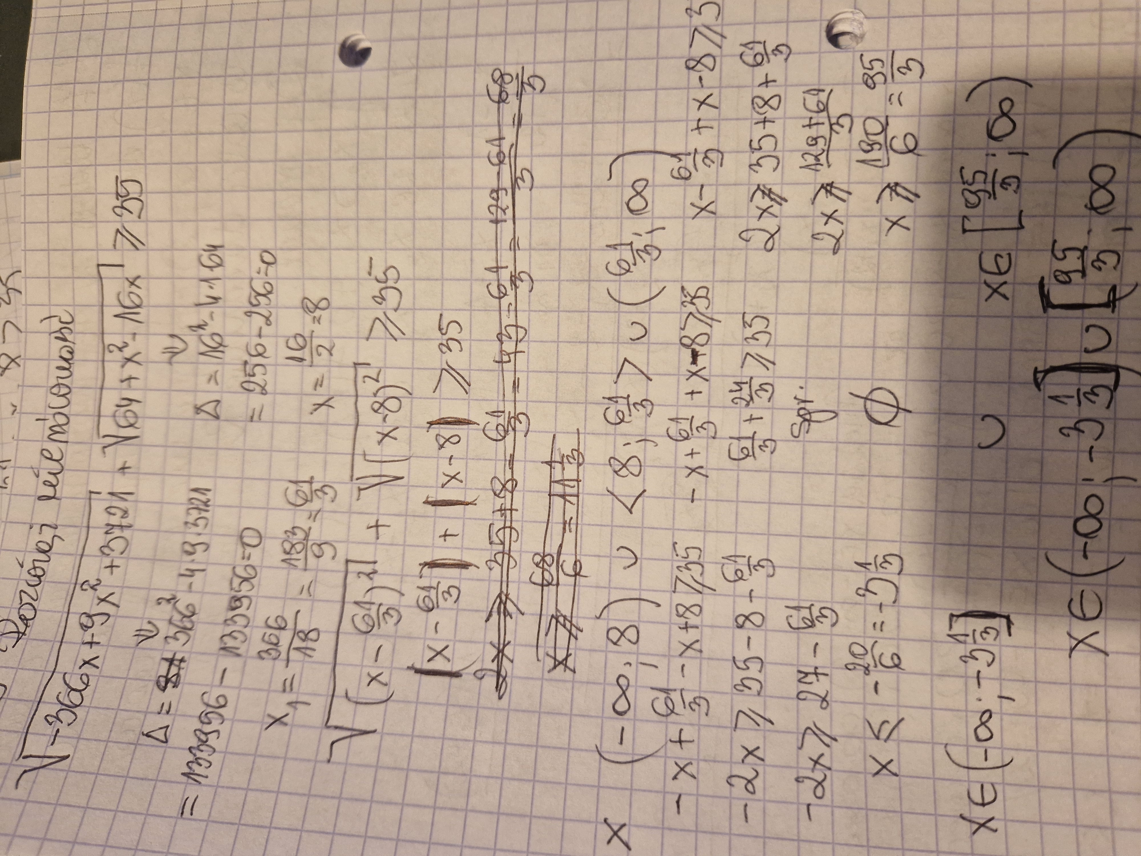 te dwa równania są różne, bo przecież |3x - 61| != |x-61/3|, dlatego wyniki nie wychodzą
