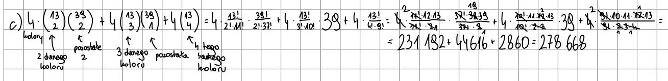 Ponieważ twoje zdarzenia pokrywają się. Liczysz na początku dla przynajmniej 2 potem 3 i 4 i czegoś jeszcze. Czyli gdy liczysz dla 2 moga sie również pojawić 3 lub 4 analogicznie dla 3. Skorzystaj z zdarzenia przeciwnego i wtedy wyjdzie dobry wynik