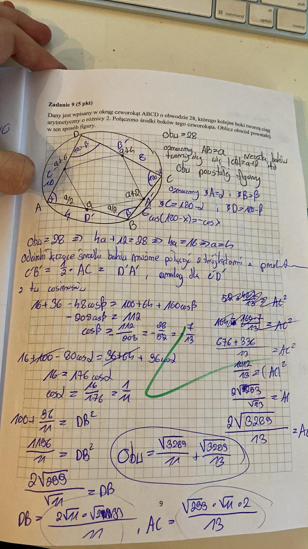 Ja nie zrobiłem równoległobokiem a metodą napałova oraz twierdzenia cos