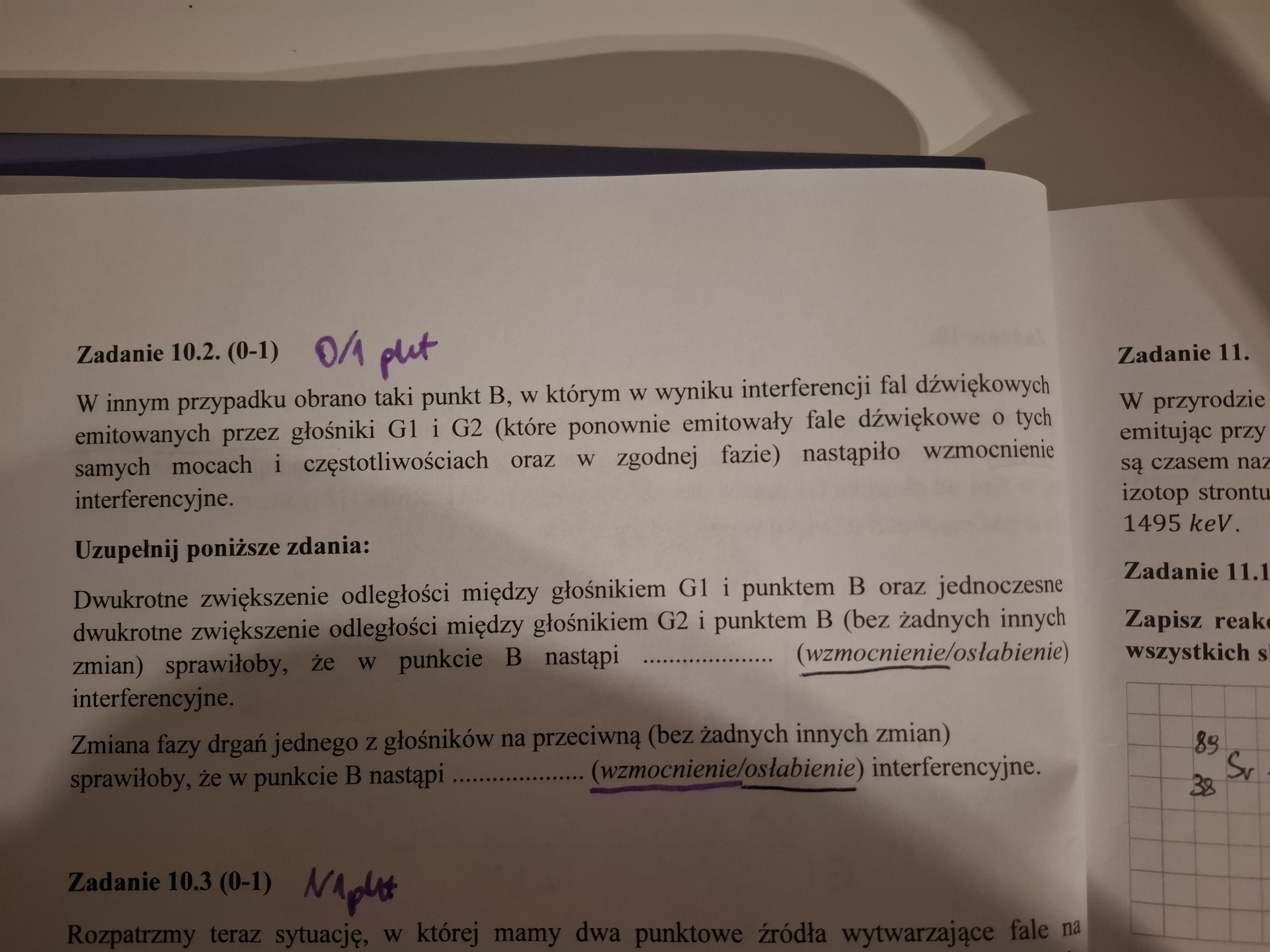 Nie wiem dlaczego w drugim podpunkcie zadania 10.2 jest wzmocnienie. Wydawało mi sie ze jesli w zgodnych fazach było wzmocnienie. To w przeciwnych powinno być osłabienie