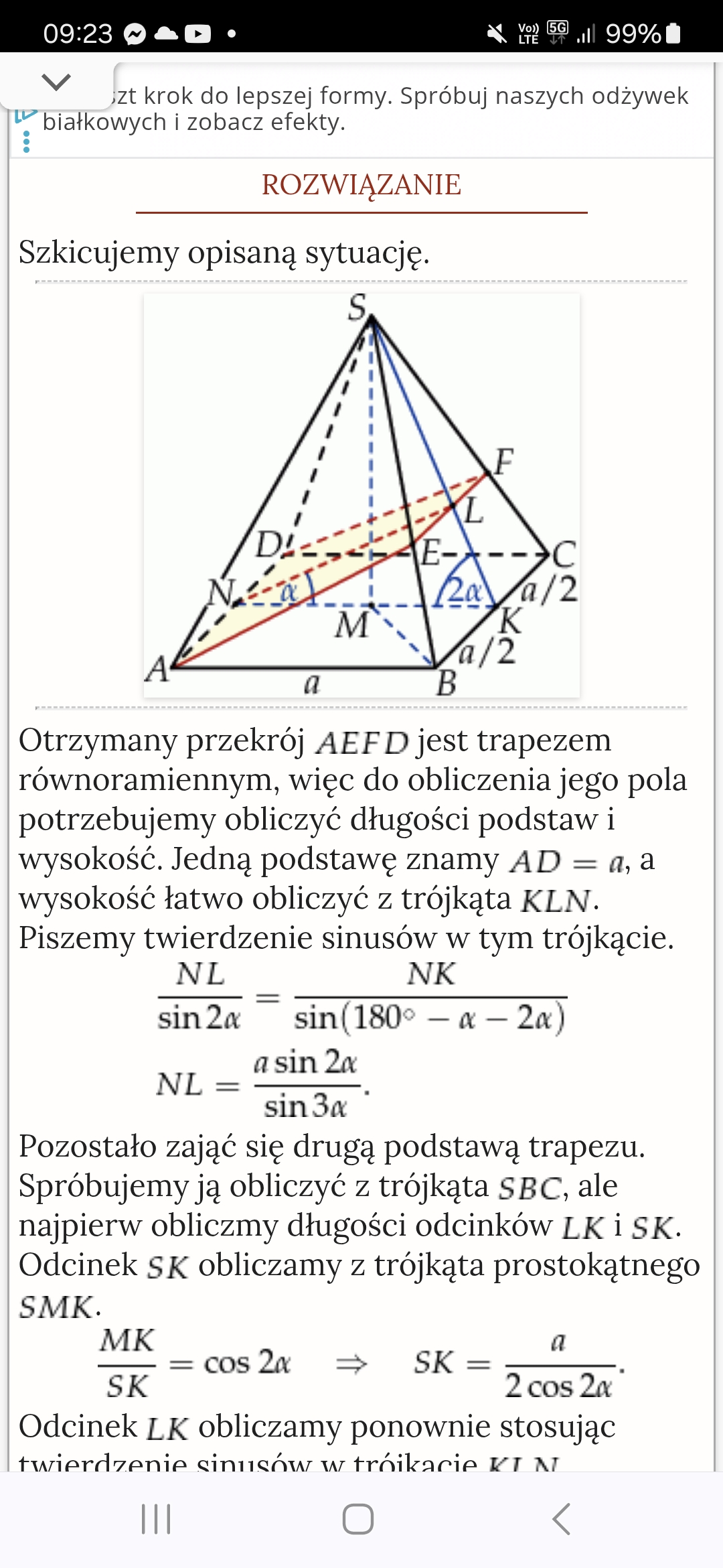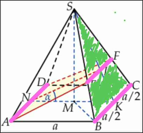 Bok AD jest równoległy do BC i płaszczyzna czerwona i zielona przechodzą przez nie to przecięcie tych płaszczyzn jest równoległe do obu tych odcinków.