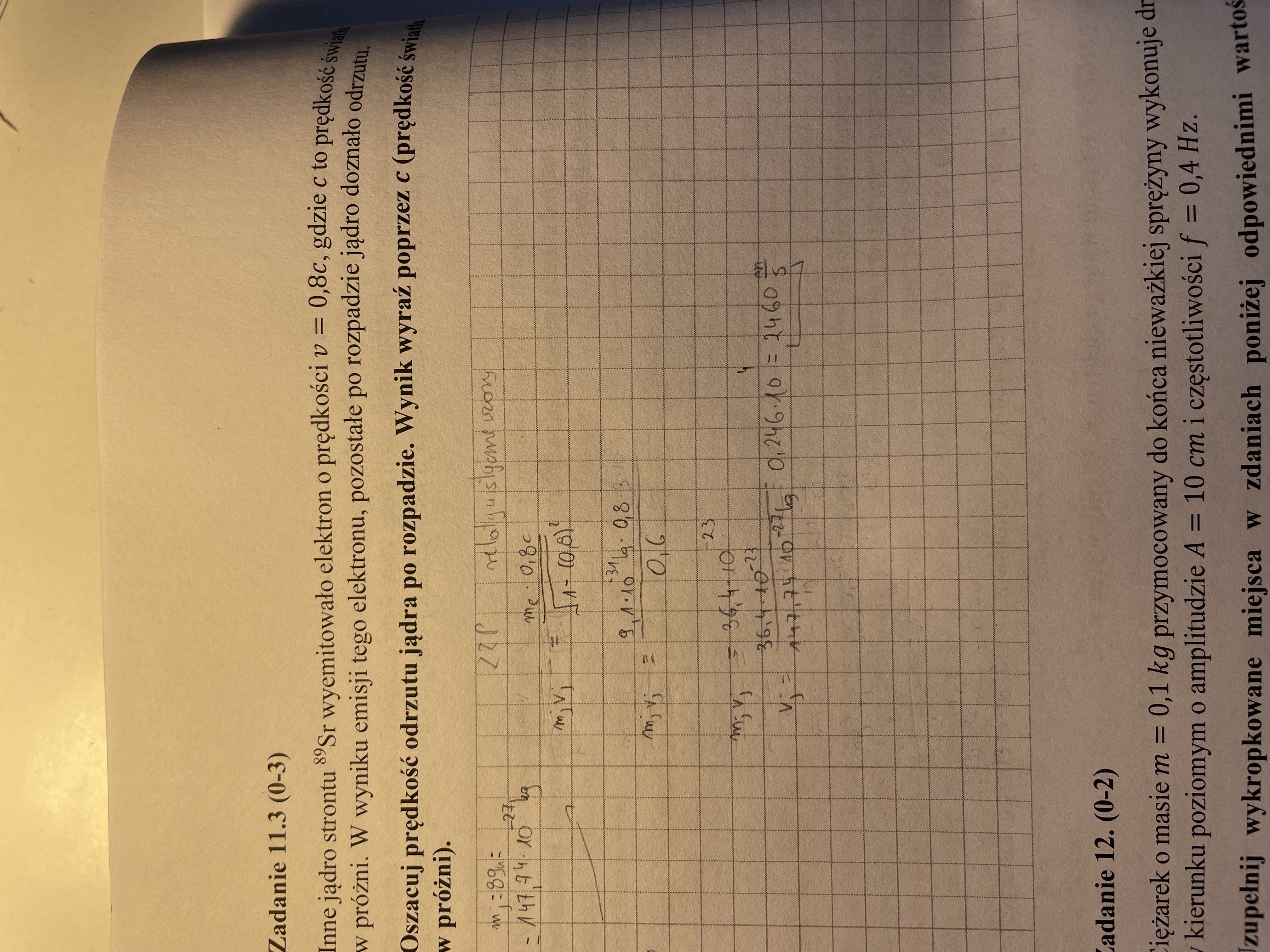 Dlatego, że prędkość odrzutu takiego jądra w przypadku rozpadu promieniotwórczego jest bardzo mała w porównaniu do prędkości światła, więc używanie klasycznego wzoru na pęd jest dla takiego jądra w zupełności wystarczające. Wskazuje na to zresztą wyraźnie uzyskany przez Ciebie tutaj wynik - 2460 m/s to znacznie mniej niż c = 3*10^8 m/s (ponad milion razy mniej).