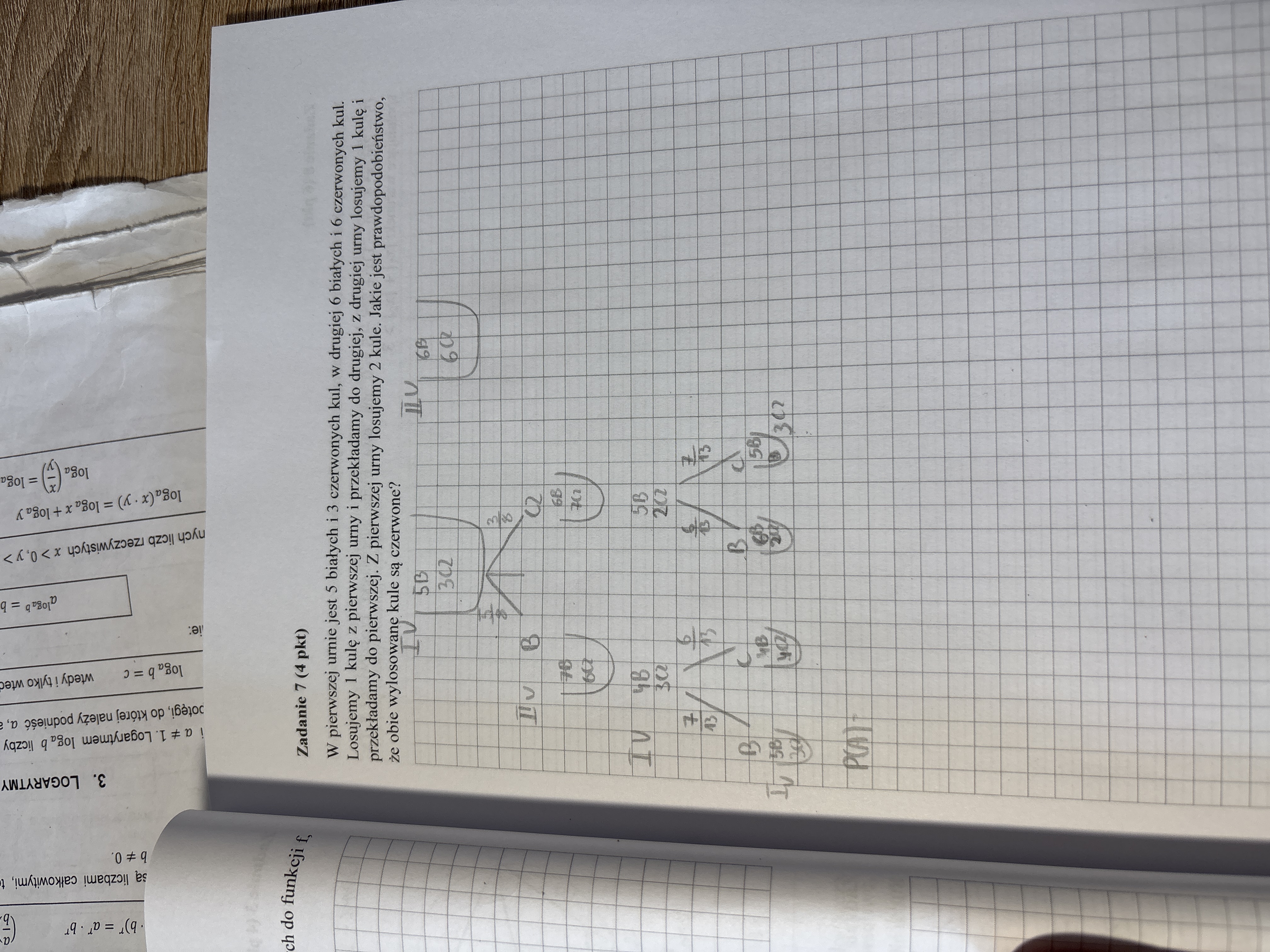 Musisz się policzyć ile będzie kul po przeniesieniu i potem policzyć prawdopodobieństwo wylosowania dwóch czerwonych