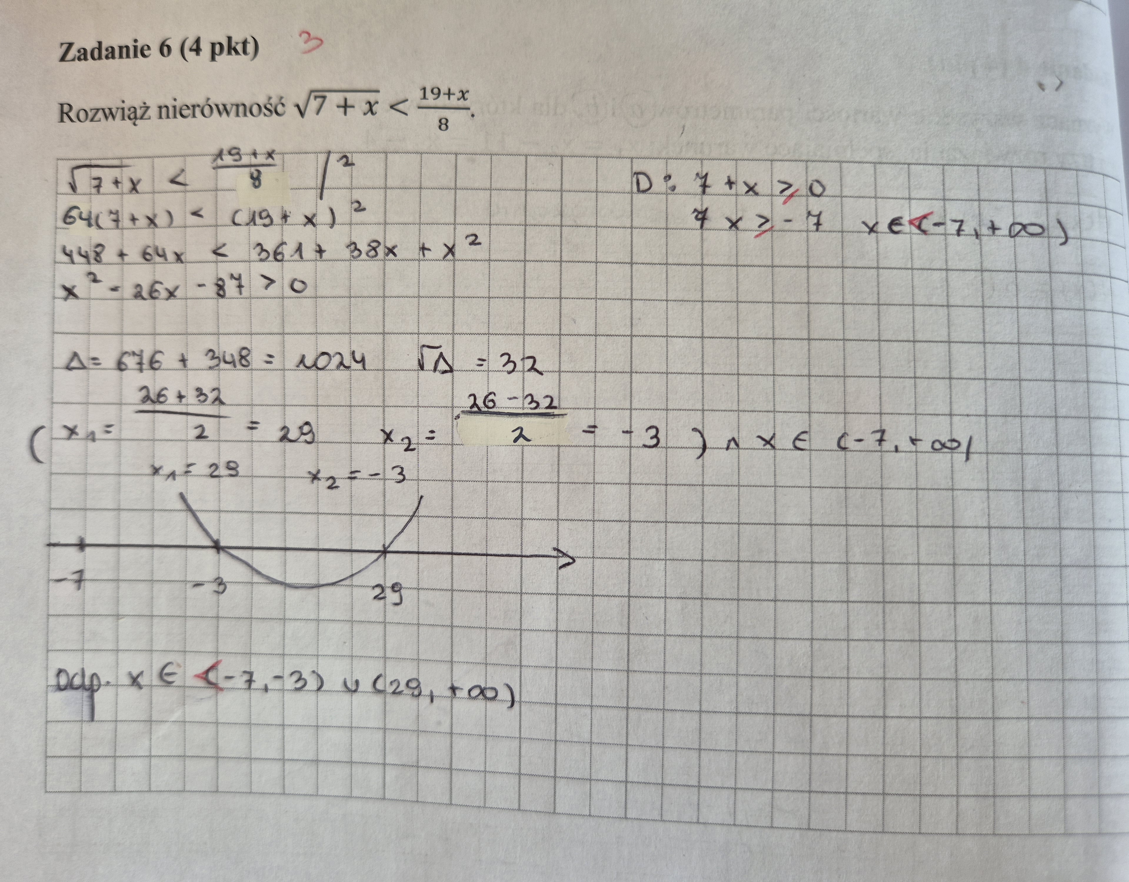 A czy jeśli w tym rowaniniu mamy napisane że 19+x/8 jest większe od pierwiastka to musimy rozważyć przypadek gdzie to wyrazenie jest mniejsze od zera?Czy samo to równanie nie definiuje nam tego?