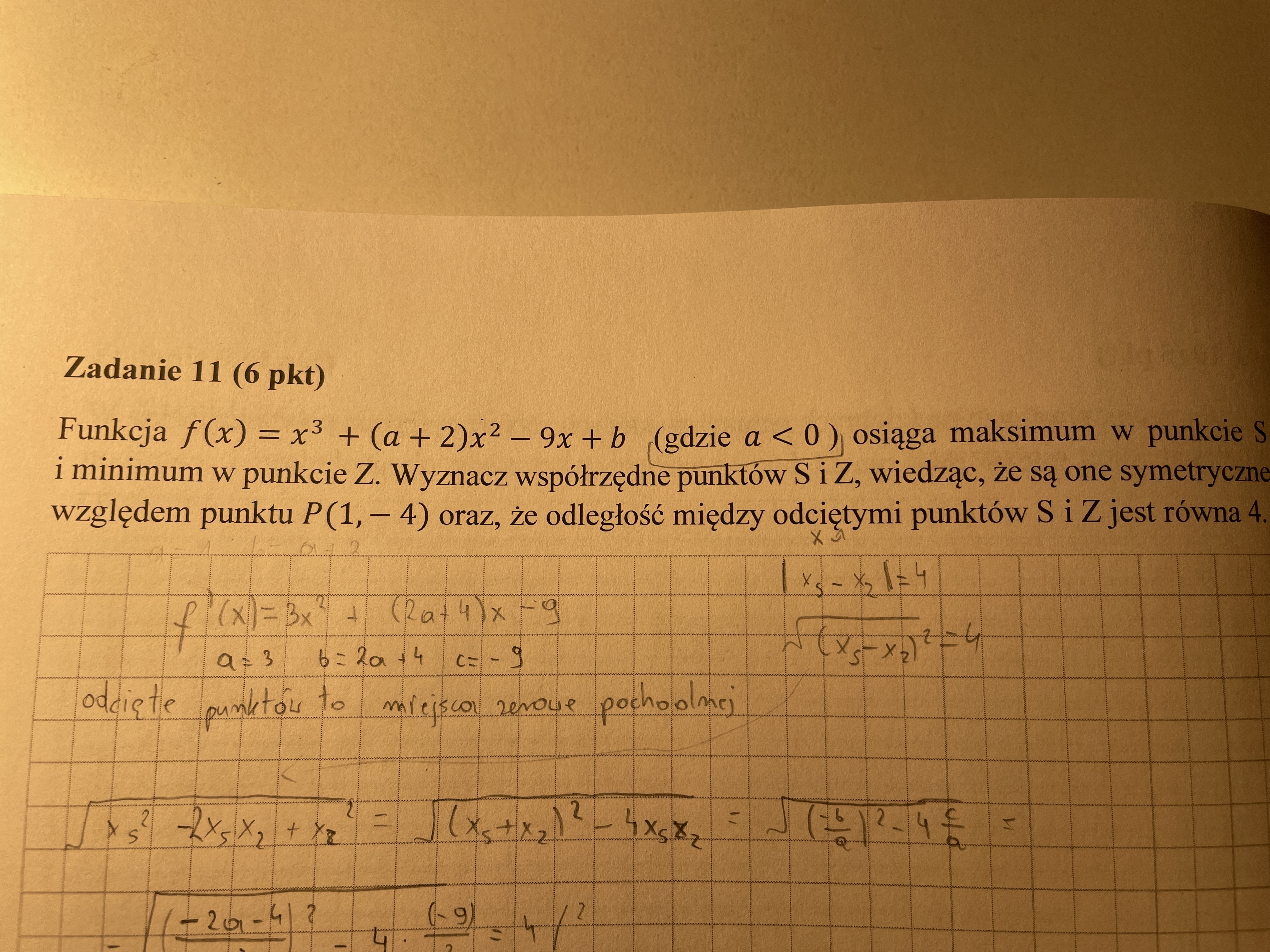 Skąd wiedzieć że odcięte punktów S i Z to miejsca zerowe pochodnej?