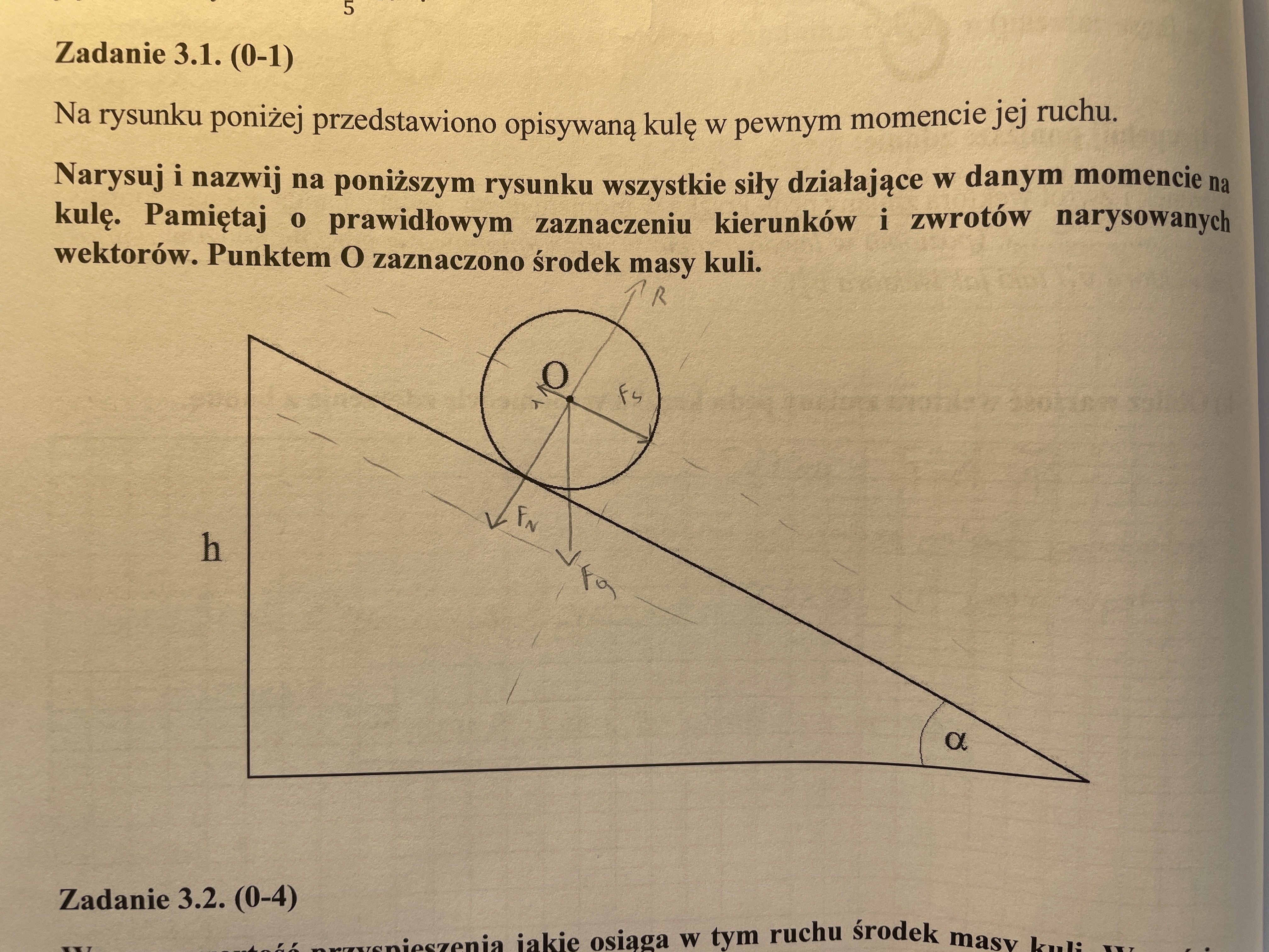 No mogłoby to niestety zostać nieuznane. Rozkład siły na składowe oczywiście bardzo często się przydaje w tego typu zadaniach, ale to już w tych podpunktach obliczeniowych. Natomiast w tych podpunktach gdzie siły trzeba po prostu np. dorysować, to ja bym dla 100% bezpieczeństwa tego nie robił. Ewentualnie narysował tylko składowe, ale już bez samej "właściwej" siły ciężkości. No bo rozkłąd na składowe robi się po to, żeby właśnie zamiast danej sił narysować jej skłądowe, bo z nimi w określonych sytuacjach łatwiej się pracuje. No ale jeśli naniesiemy je na jednym rysunku i powiemy, że to są siły działające na nasze ciało, to w praktyce narysowaliśmy dwa razy tę samą siłę (tu: siłę ciężkości, tylko że jeden raz "niezmienioną", a drugi raz rozłożoną na składowe).