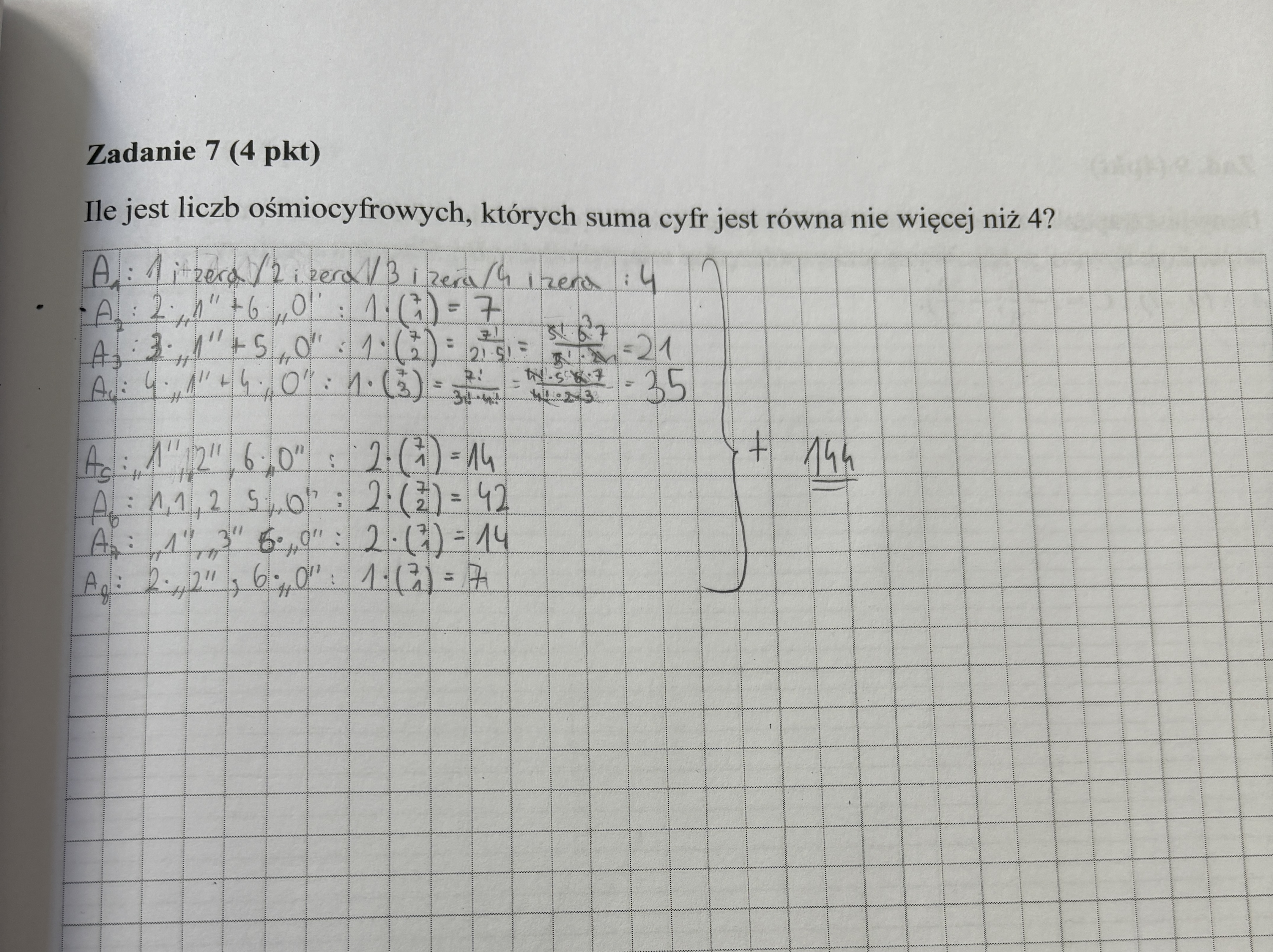 hej, brakuje mi 21 opcji dla liczb których suma cyfr jest równa 4 ale nie widzę które pominęłam. Z góry dzięki za pomoc