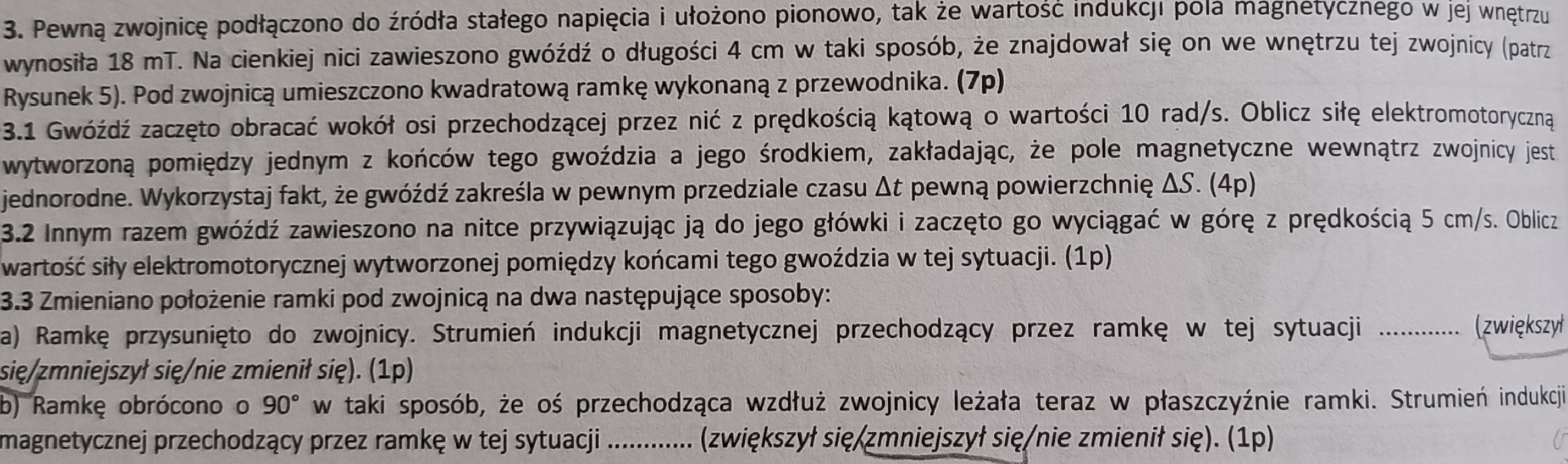 Nie rozumiem też o co dokładnie chodzi w zad. 1 z cz. 1 w podpunkcie 1.4 w 3 stwierdzeniu: "nie uwzględniając pola magnetycznego powstałego wskutek zjawiska indukcji". Czy dodatkowe powstałe pole magnetyczne to nie właśnie to powstałe wskutek indukcji?
