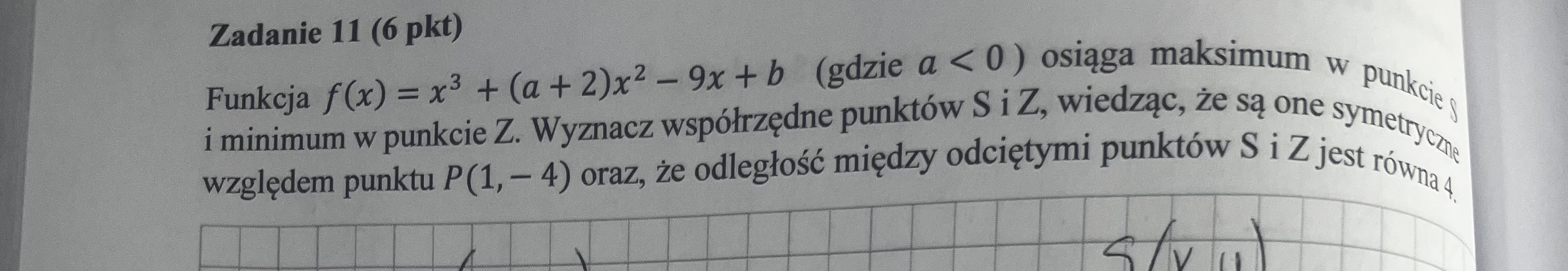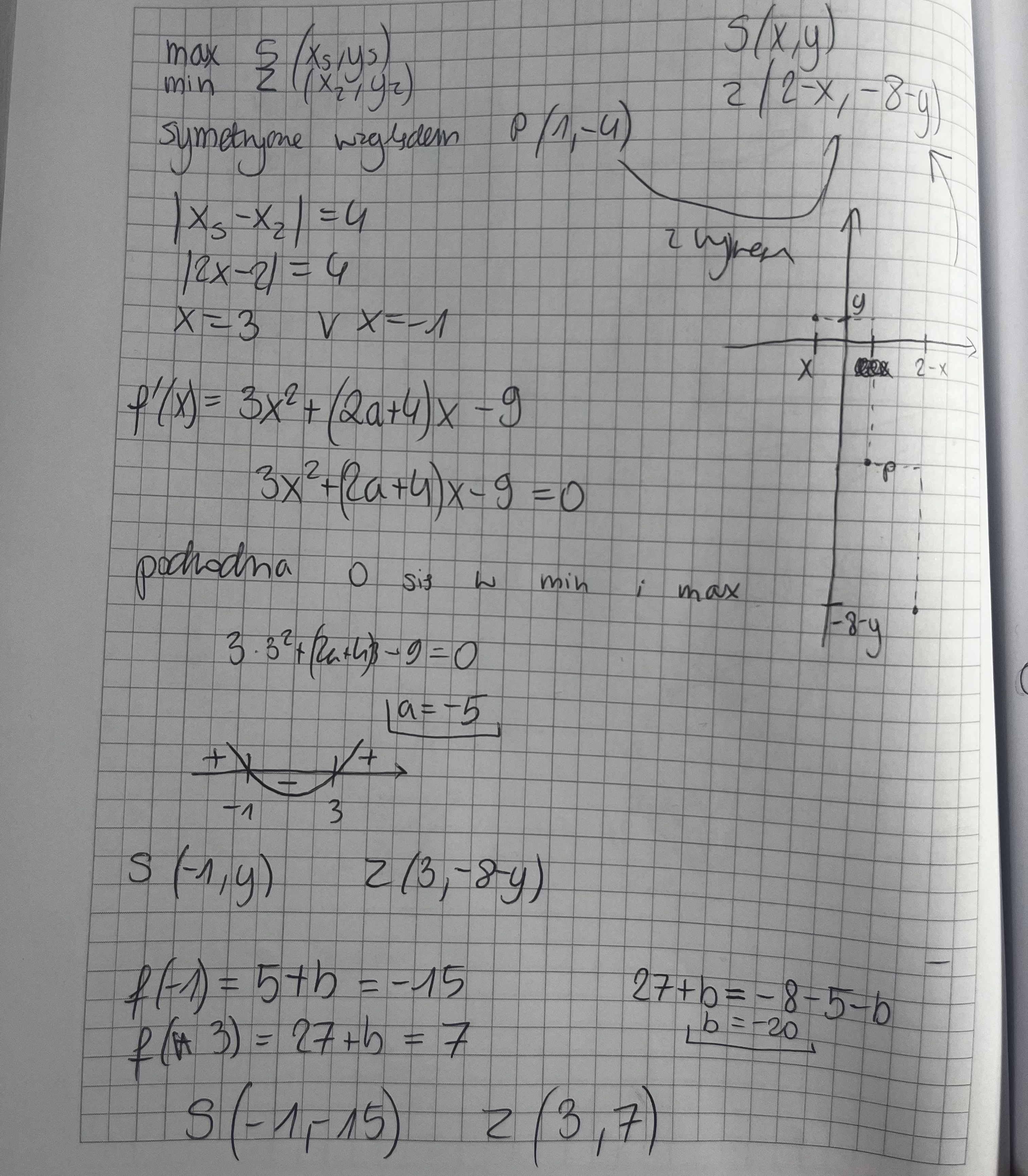 na podstawie wykresu i symetrii wzgledem P(1,-4) okreslilam wspolrzedne S i Z, z niewiadomymi x i y