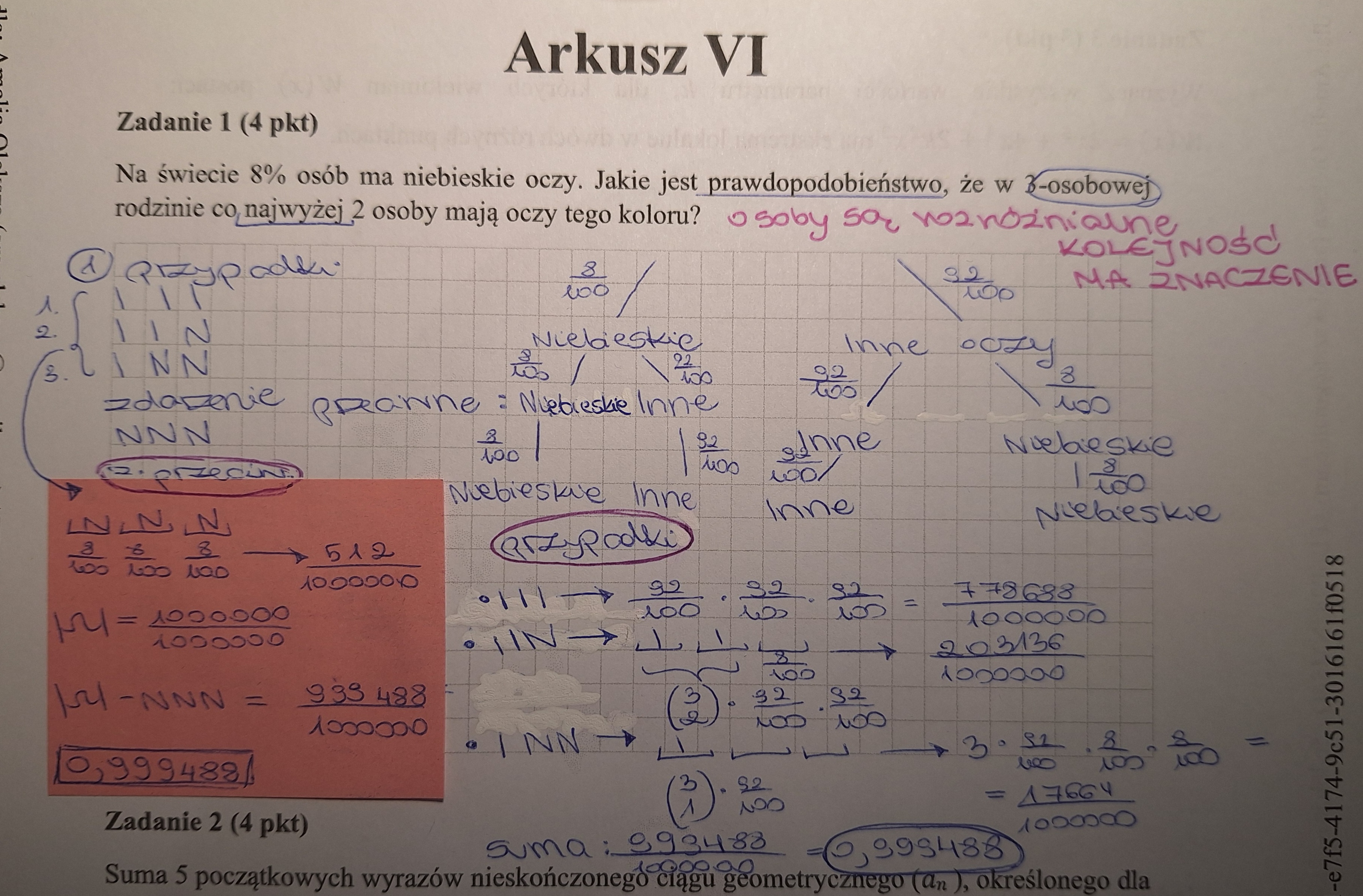 Początkowo zrobiłam, że kolejność nie ma znaczenia i wynik wyszedł błędny.