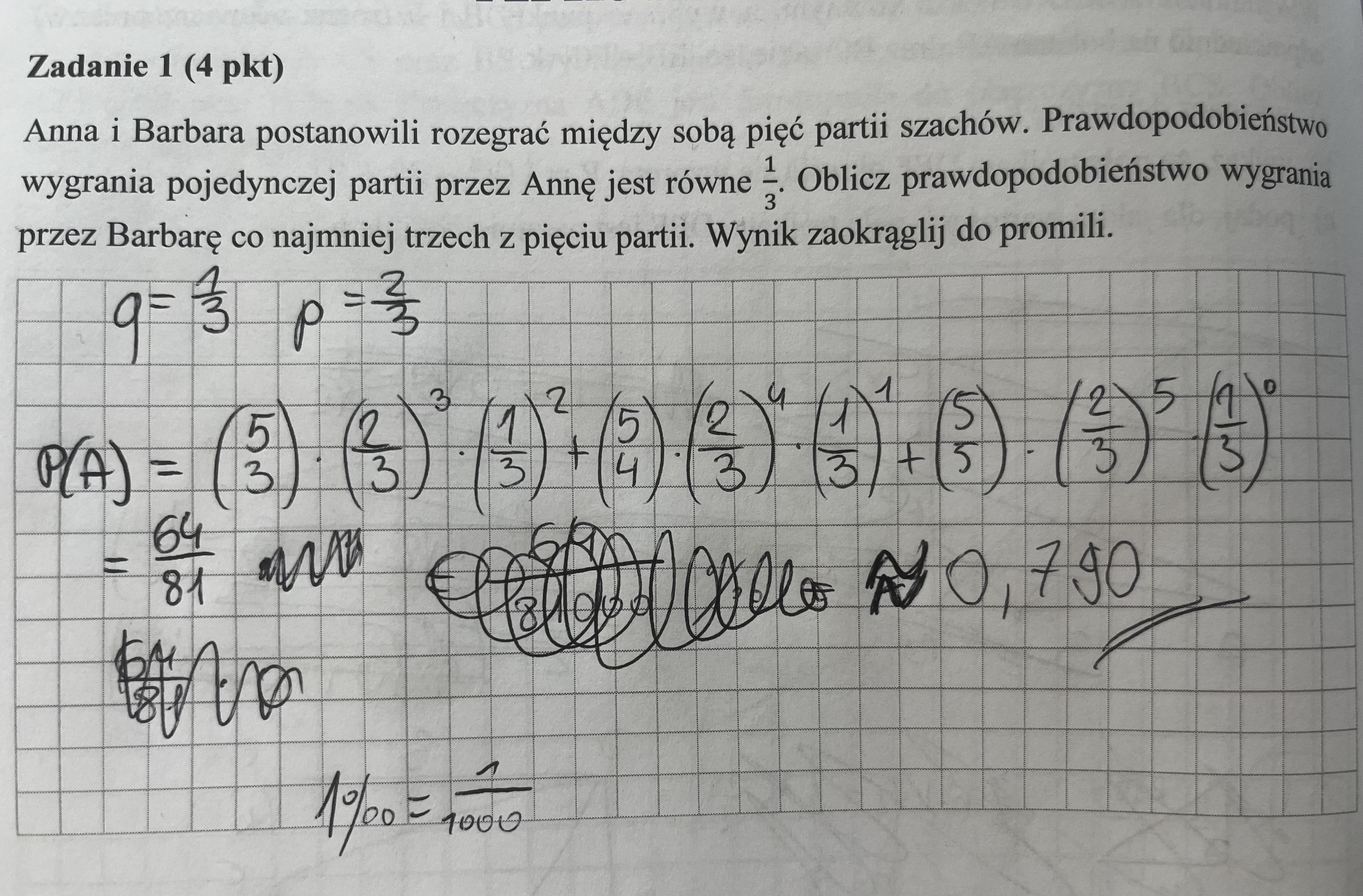 w odp wynik to 79%, czy poprawnie jest 0.790? trzeba zaaokraglic do promili czyli czesci tysiecznych, a nie ma info o %
