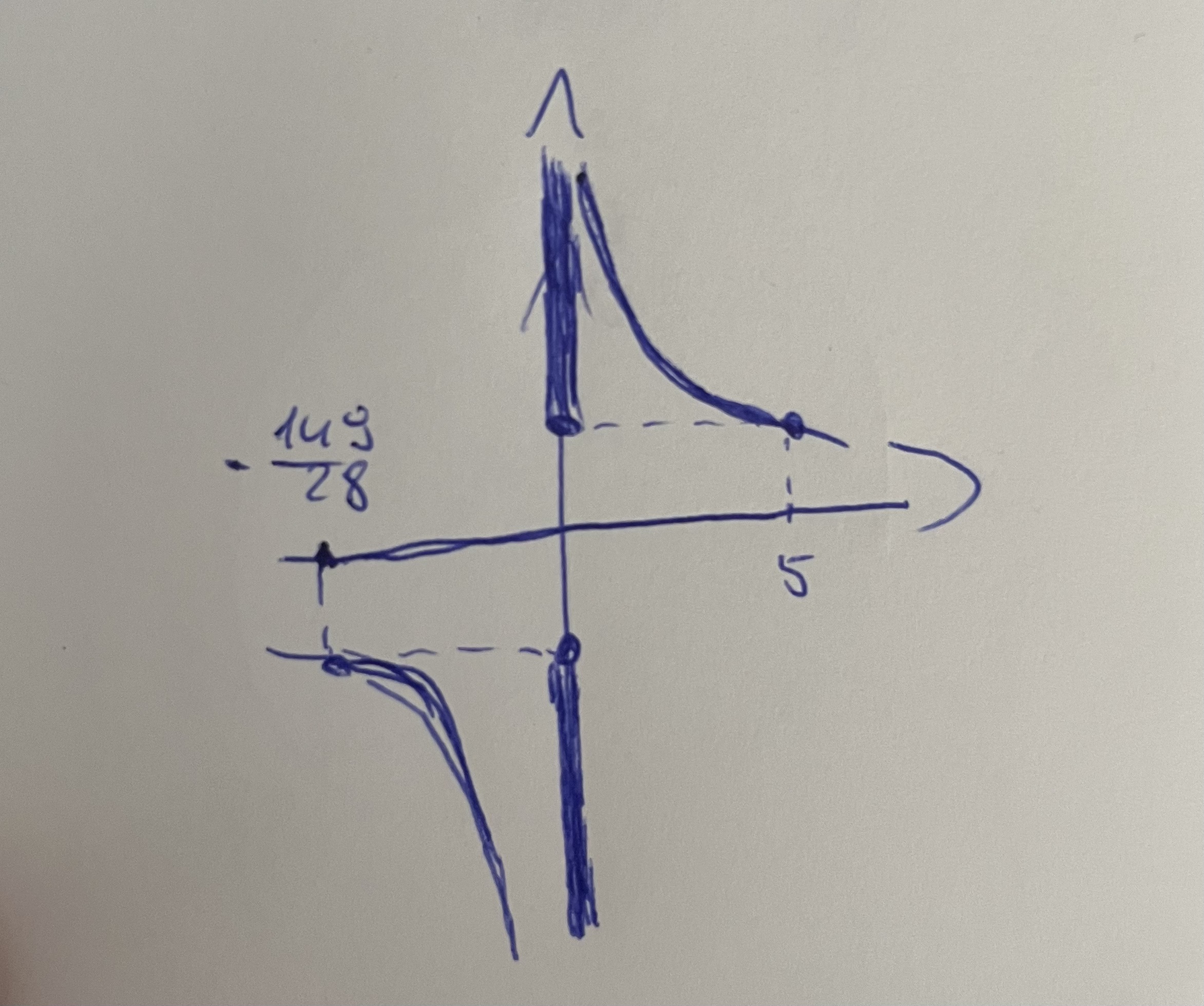 Niepotrzebnie próbujesz liczyć x. Popatrz że teraz masz nową funkcję f(g*) = 1/g*, gdzie g* ∊ <-149/28; 0) u (0; 5), narysuj więc taką funkcję:
