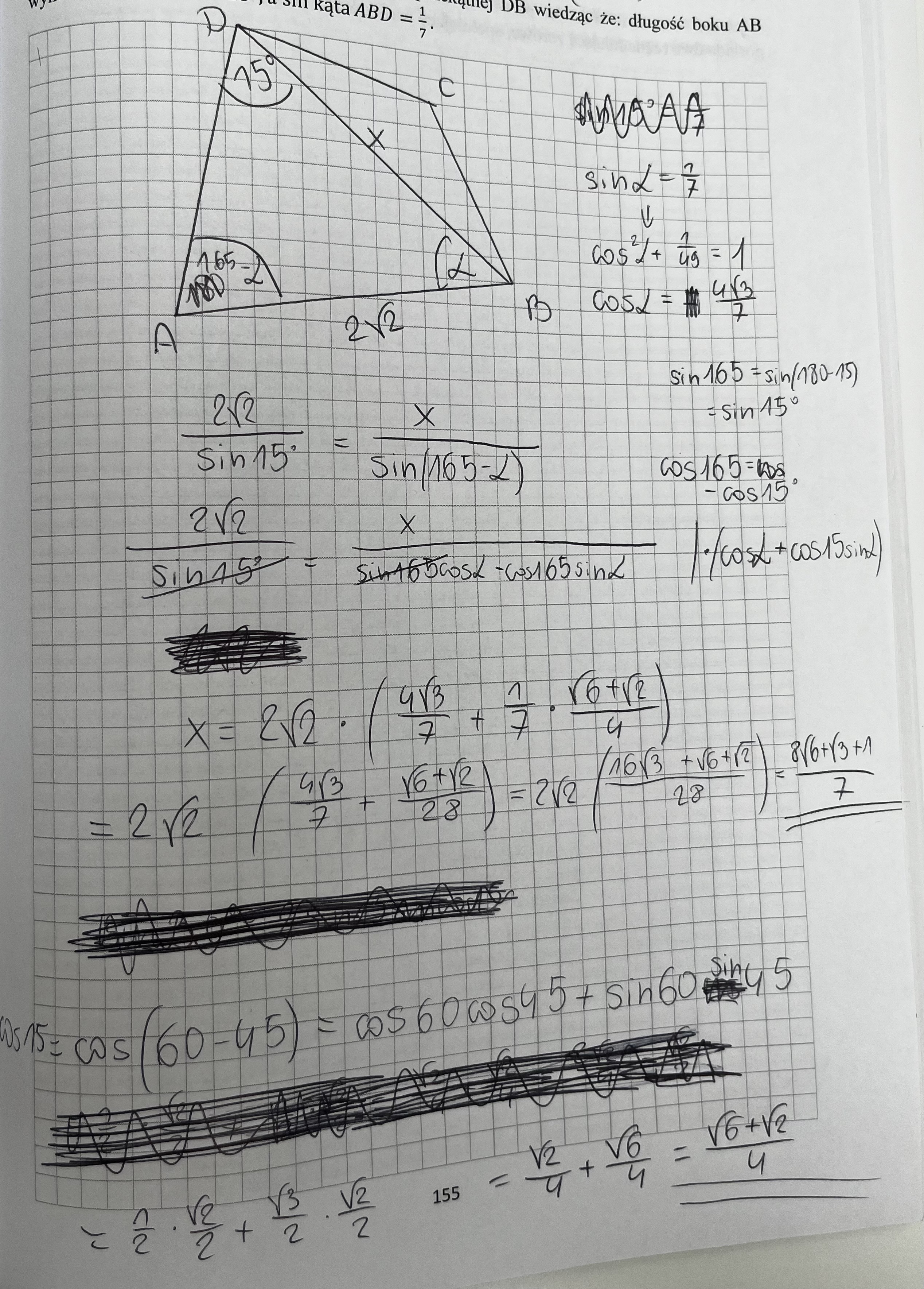No jak skracasz sobie sin 165 z sin 15 to nie możesz tego zrobić bo masz tam jeszcze minus.