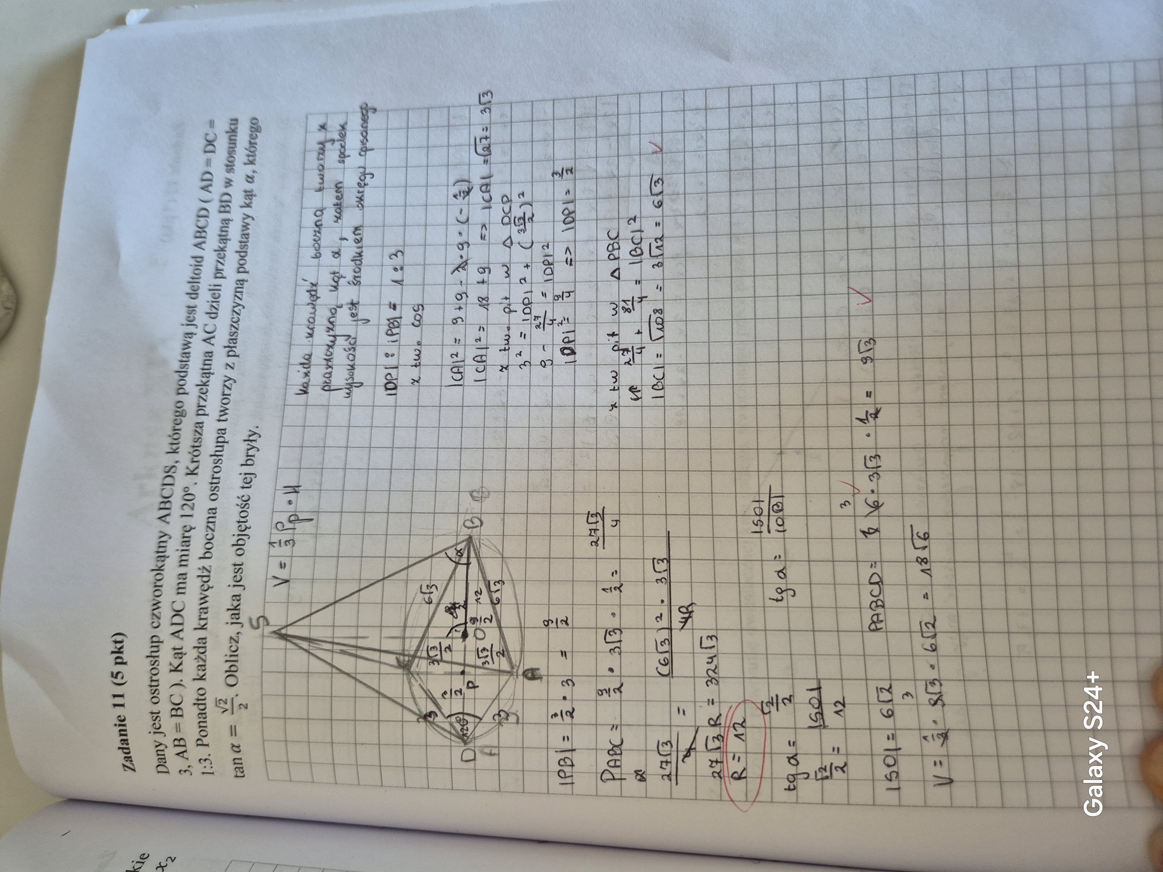 Mam pytanie, tak naprawdę to na podstawie czego my ustalamy która połowa przekątnej podzielonej w stosunku 1:3 to tak dłuższa, I właśnie nie wiem czy zły wynik u mnie wlasnie z tego wynika czy jeszcze z czegoś innego