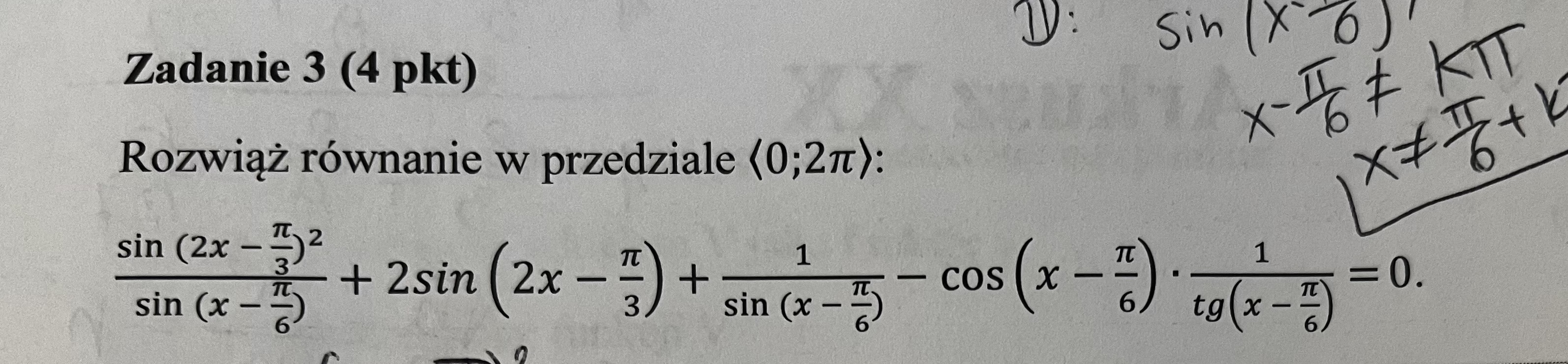 ja sobie dałem t = x - pi/6 więc 2t = 2x - pi/3. Myślę że już sobie poradzisz.