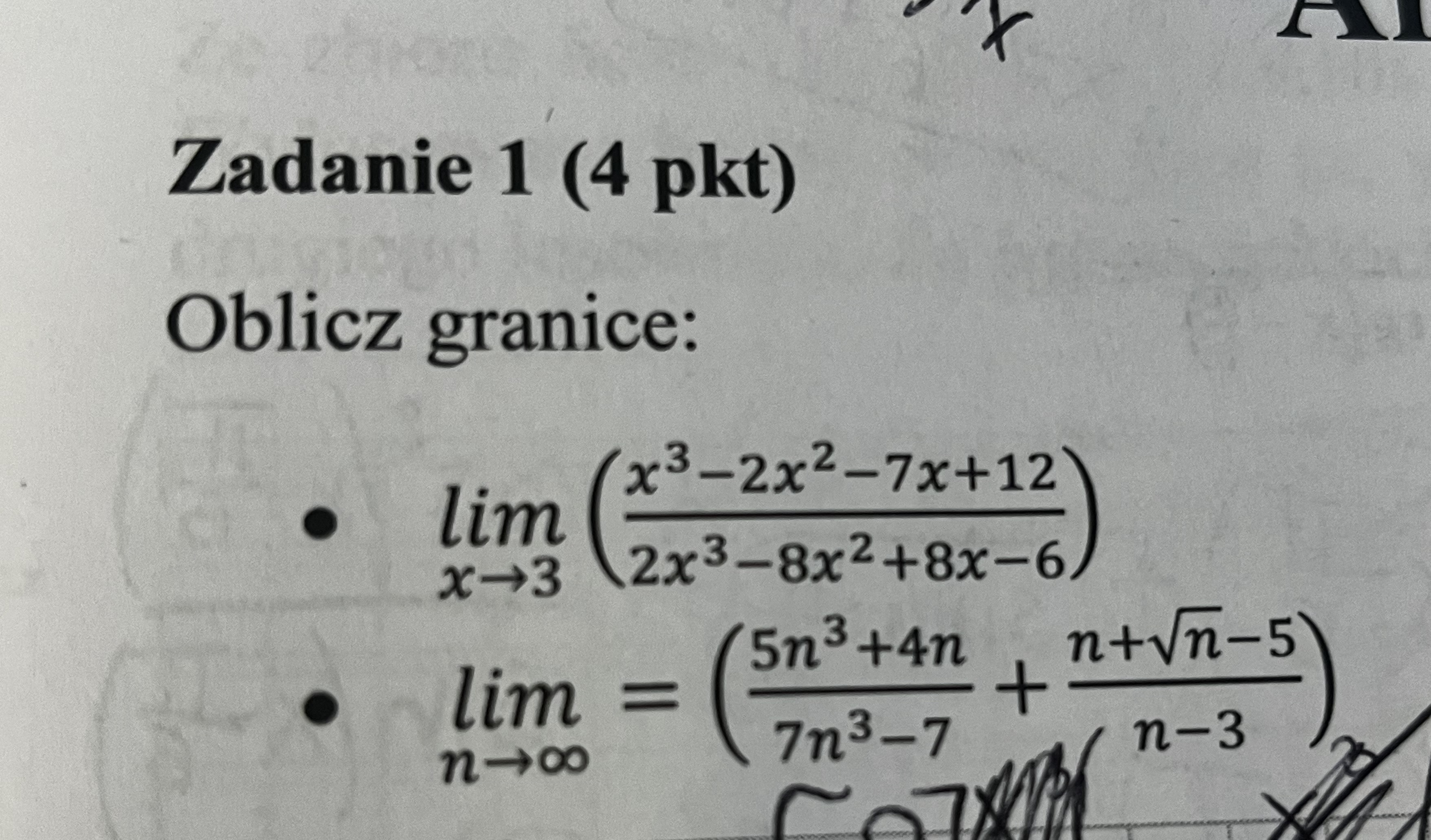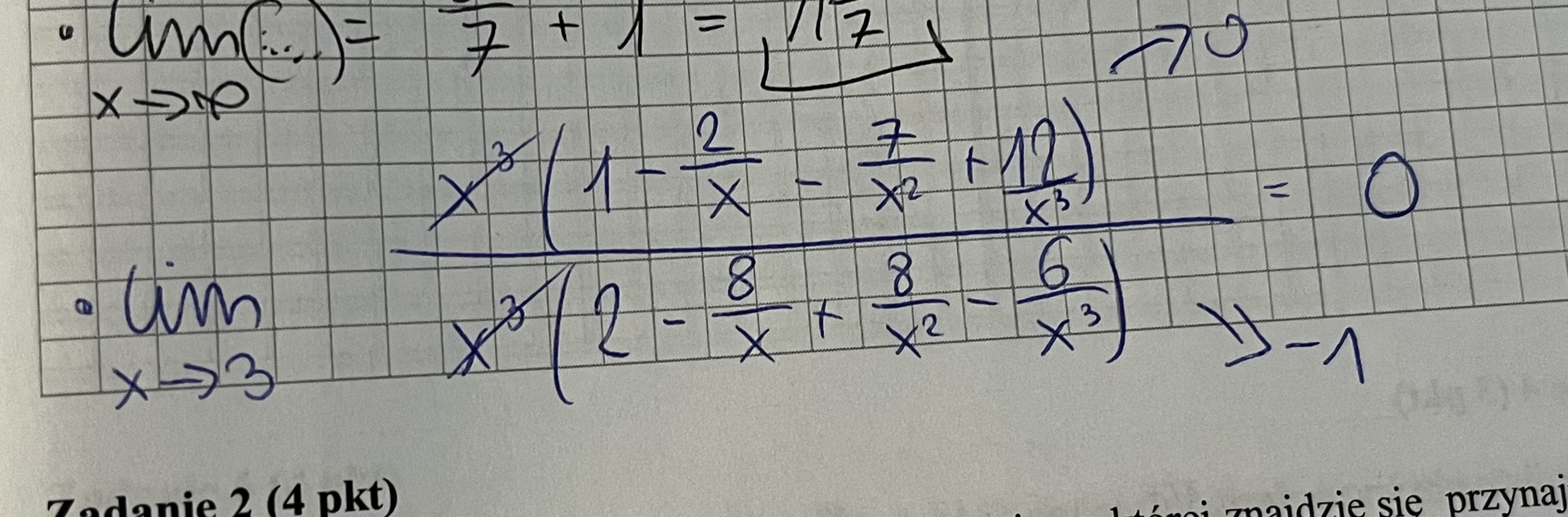 No tam masz granice do 3 a nie do nieskończoności. więc musisz przed nawias wystawić x-3 i potem to skrócić następnie podstawiasz 3 i masz 4/7