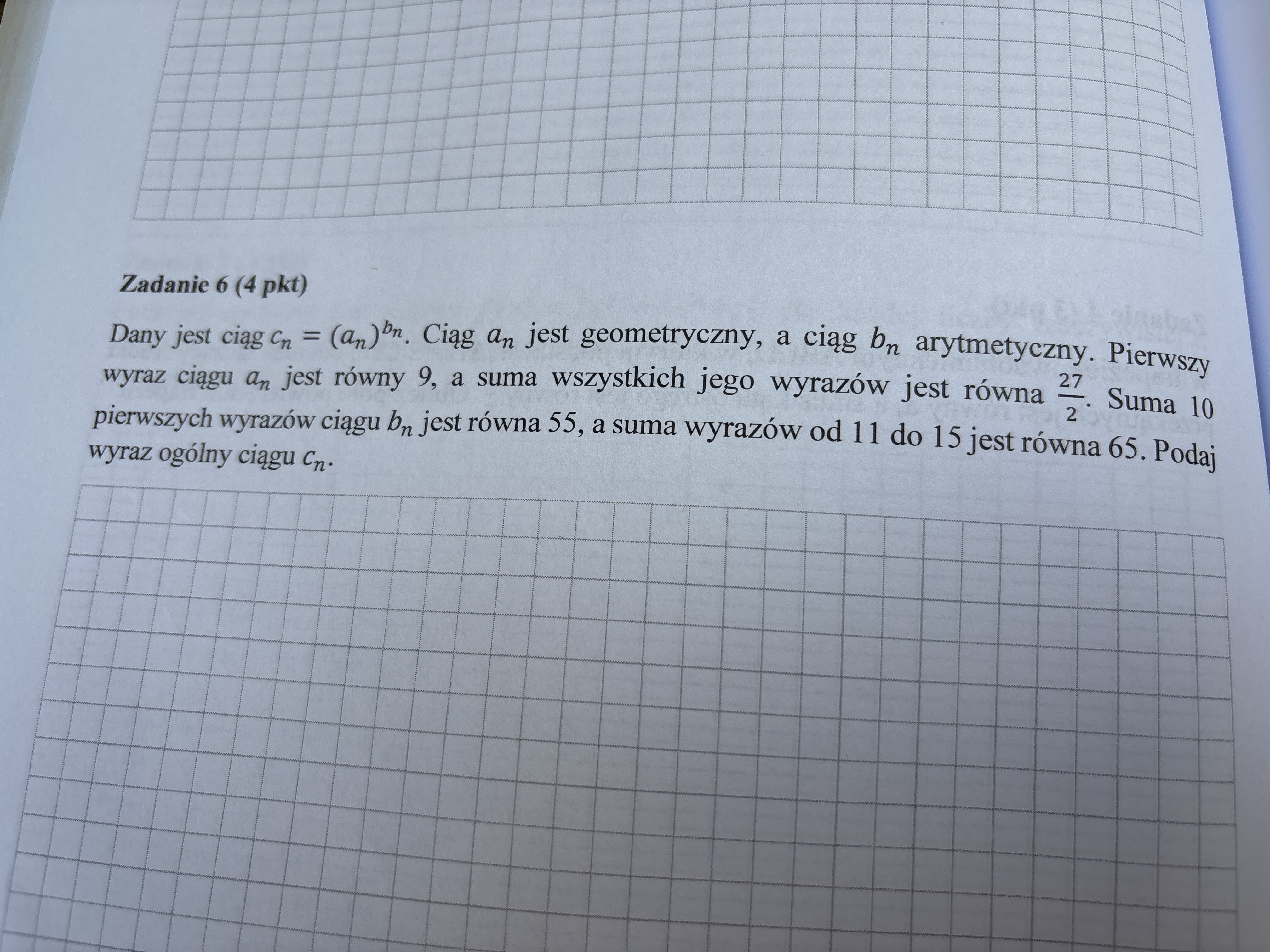 W ciągu bn wyszedł mi źle wyraz pierwszy i różnica ale nie wiem dlaczego