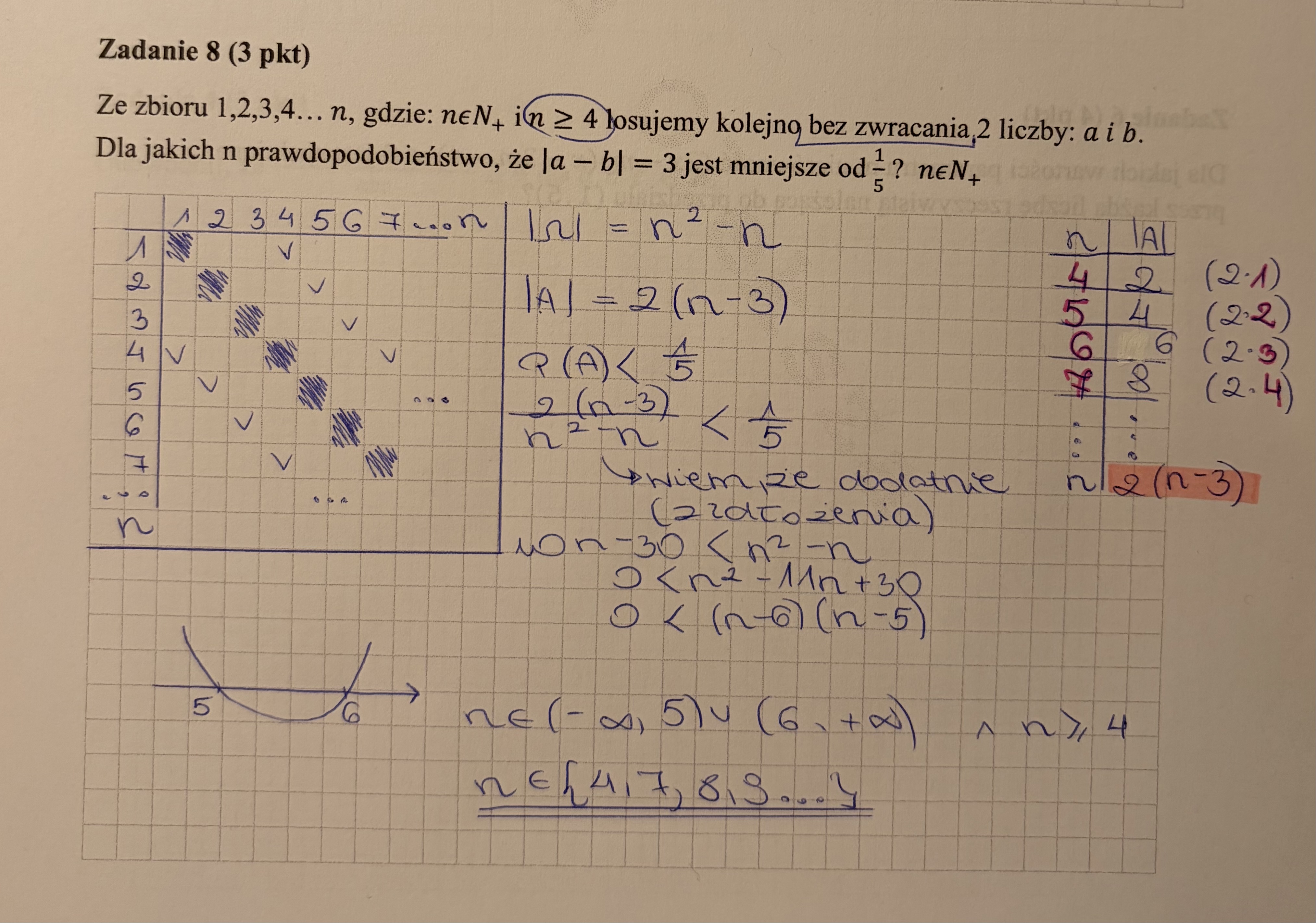 Dlaczego nie mogę rozpisać omegi z symbolu Newtona (n po 2) ?